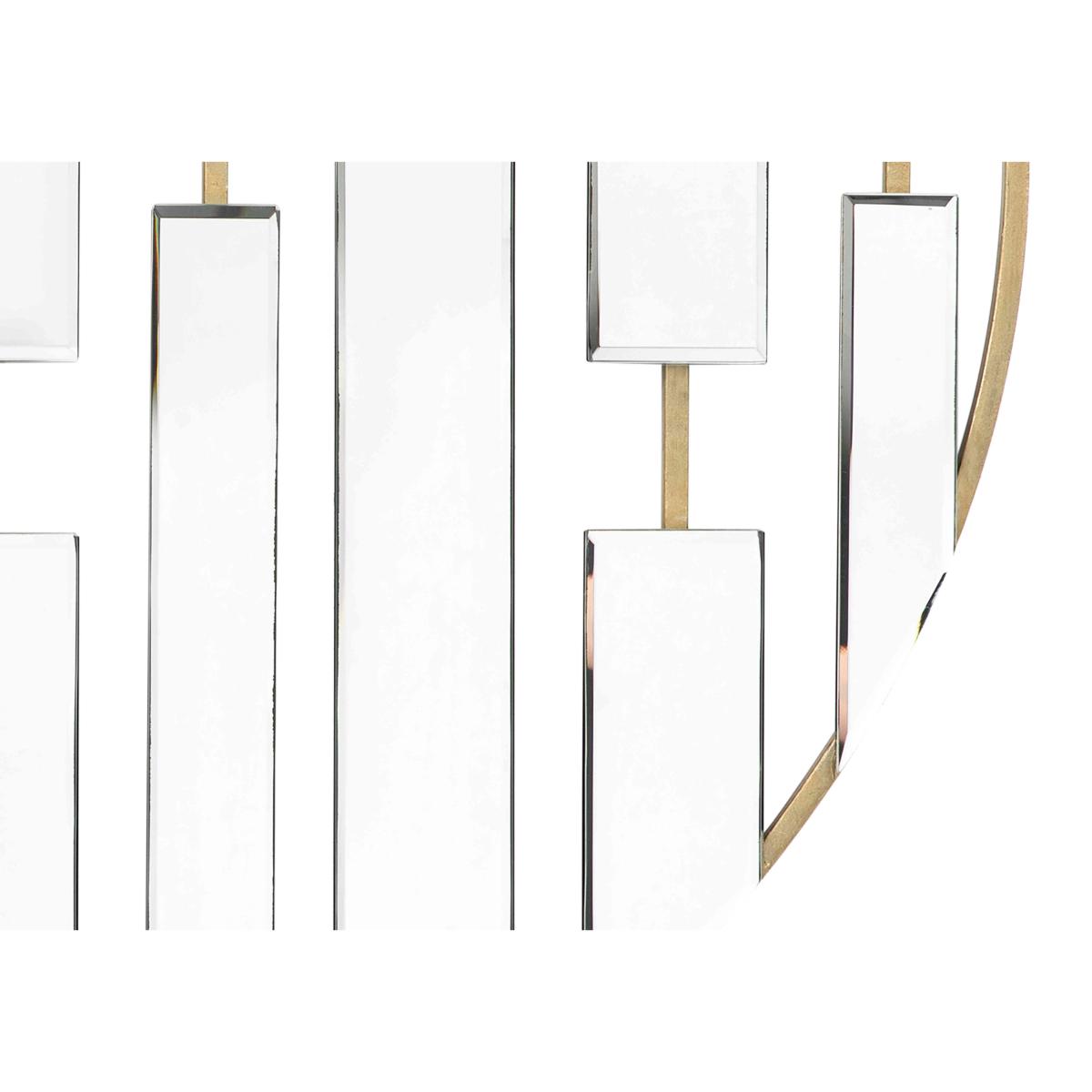This contemporary mirror is sure to turn heads with its stylish abstract bevelled glass design. Finished in a gorgeous champagne colour. Why you'll love it Statement mirror with an intricate abstract design. Elegant bevelled glass panels. On-trend champagne frame. Only available online. This mirror is part of the Furniture Village home accessories collection. What you need to know Metal frame. To clean, apply cleaner on a soft, lint-free cloth then wipe the mirror. Do not spray cleaner directly onto the mirror. Hangs horizontally only. For indoor use only. Dimensions Height: 90 cm (36 in). Depth: 1 cm (1 in). Width: 90 cm (36 in).