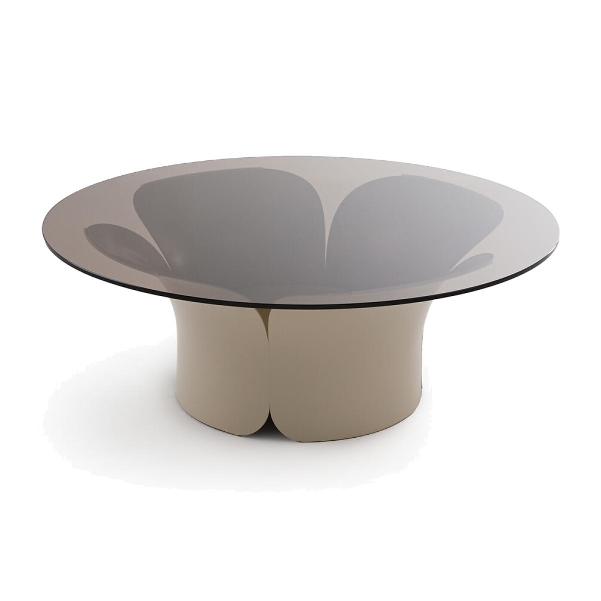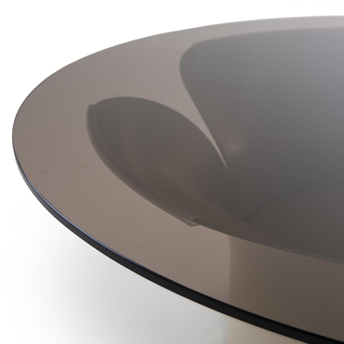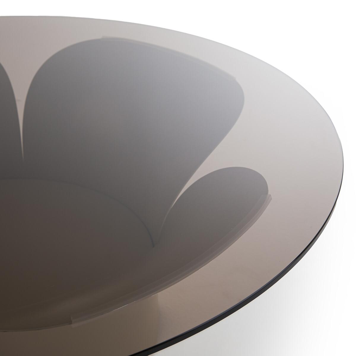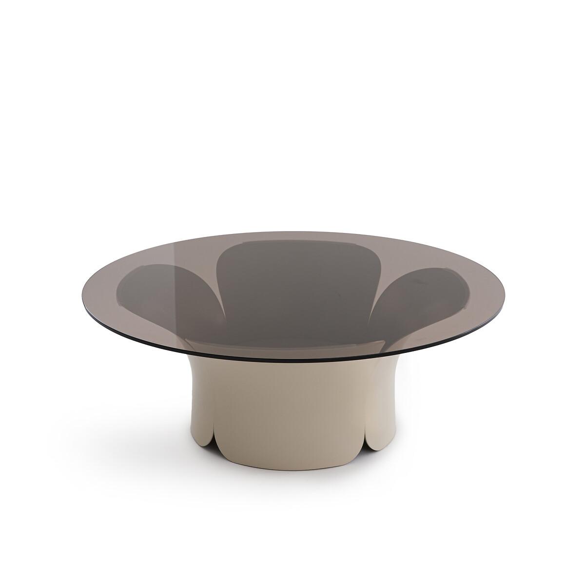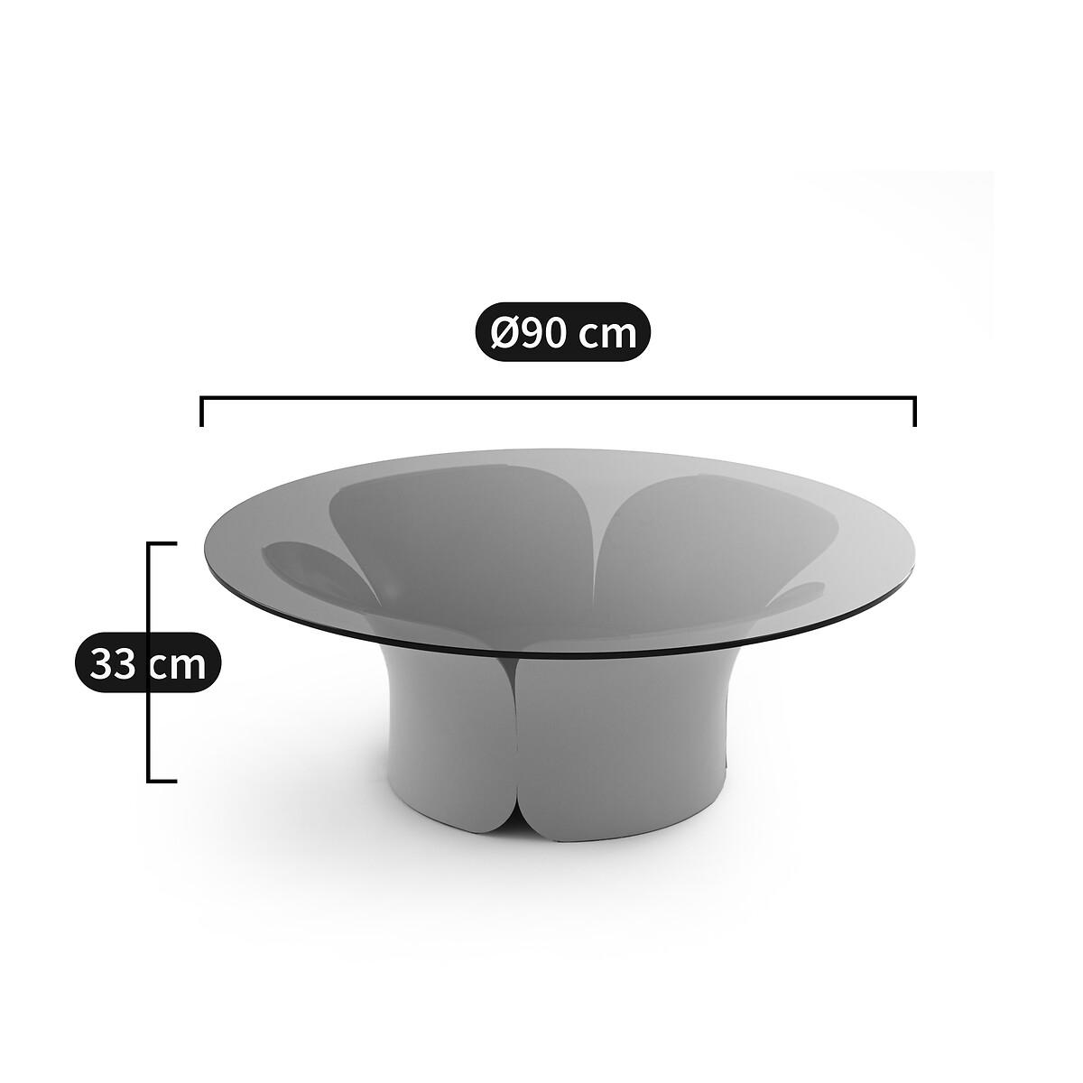 This is Tessen, the tulip coffee table with glass top. This flower shape has an originality which will reinvent the decor and atmosphere of your living room. The foot has a charming transparency. Designed by La Redoute Interiors. Product Details • Flower-shaped iron structure with matte paint finish • Smoked grey tempered glass top to place on top • Central tulip-shaped legs • Polyethylene deck glides. Care Advice • To protect your coffee table, consider trivets, coasters and placemats. Dimensions • Width: 90cm • Height: 33cm • Depth: 90cmDelivery:. This product required assembly. Available for home delivery. Dimensions and weight of parcel2 parcels • L76 x H40 x D76cm 21.6kg • L97 x H6 x D76cm, 14.6kg