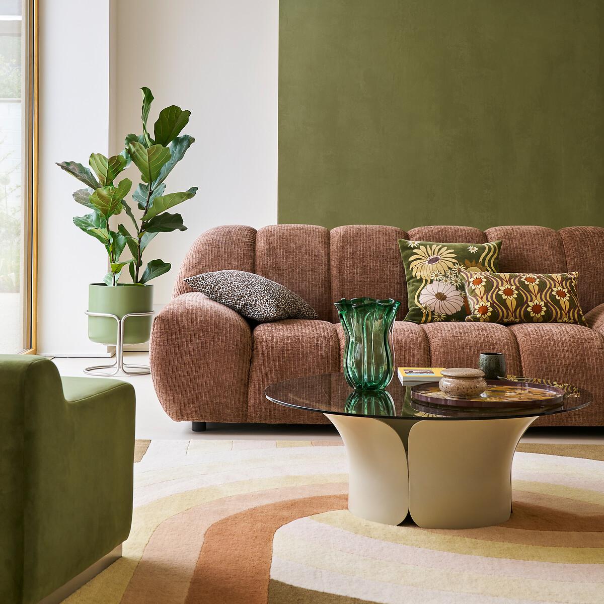 This is Tessen, the tulip coffee table with glass top. This flower shape has an originality which will reinvent the decor and atmosphere of your living room. The foot has a charming transparency. Designed by La Redoute Interiors. Product Details • Flower-shaped iron structure with matte paint finish • Smoked grey tempered glass top to place on top • Central tulip-shaped legs • Polyethylene deck glides. Care Advice • To protect your coffee table, consider trivets, coasters and placemats. Dimensions • Width: 90cm • Height: 33cm • Depth: 90cmDelivery:. This product required assembly. Available for home delivery. Dimensions and weight of parcel2 parcels • L76 x H40 x D76cm 21.6kg • L97 x H6 x D76cm, 14.6kg