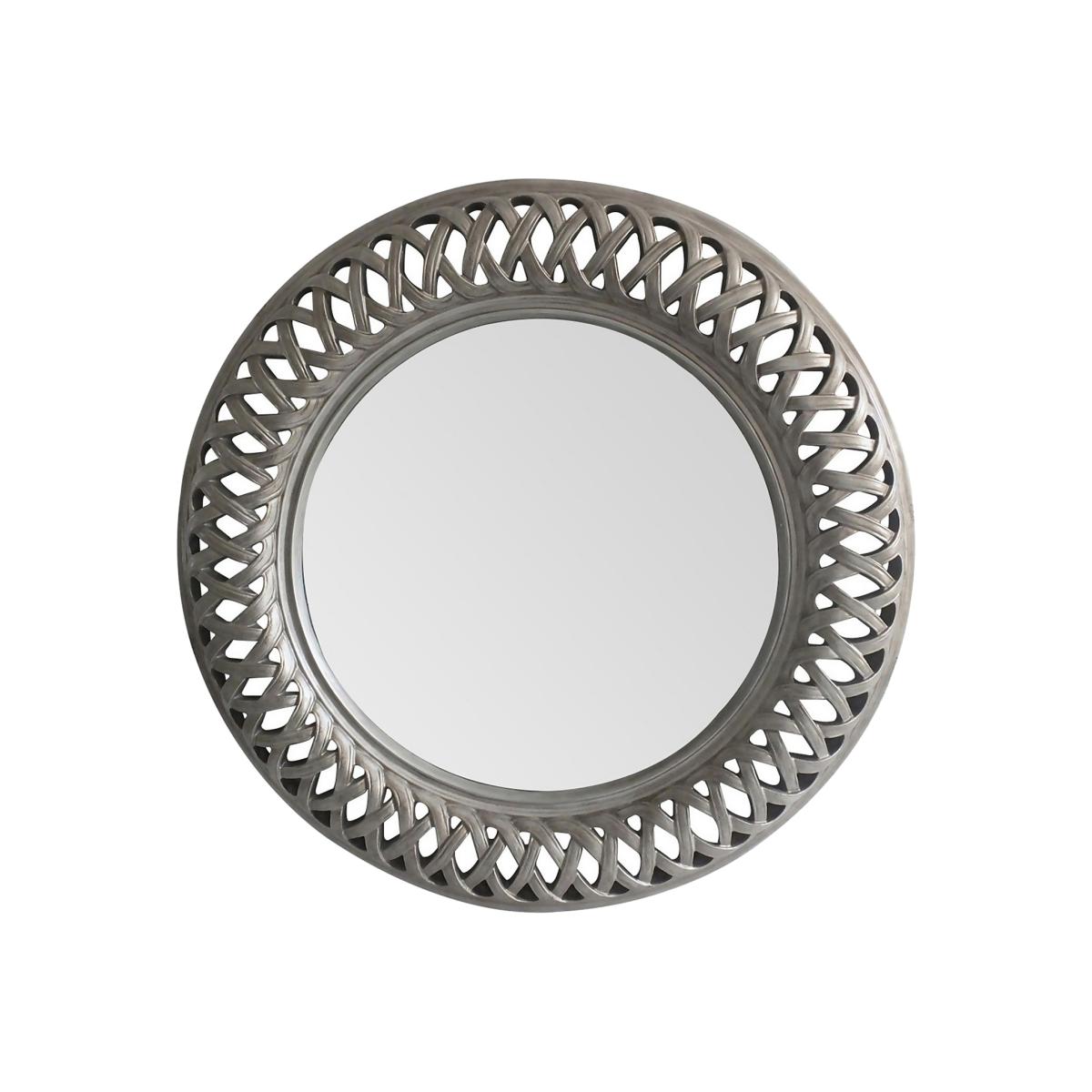The round frame of the Tessere wall mirror is notable for the linear knot work that references Celtic design. The convex frame rises and falls to accentuate the inset mirror. A channelled border surrounds the round mirror. Style this decorative statement