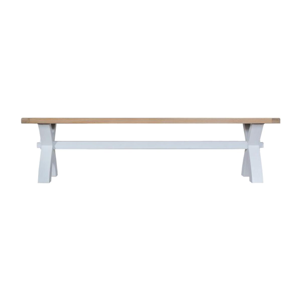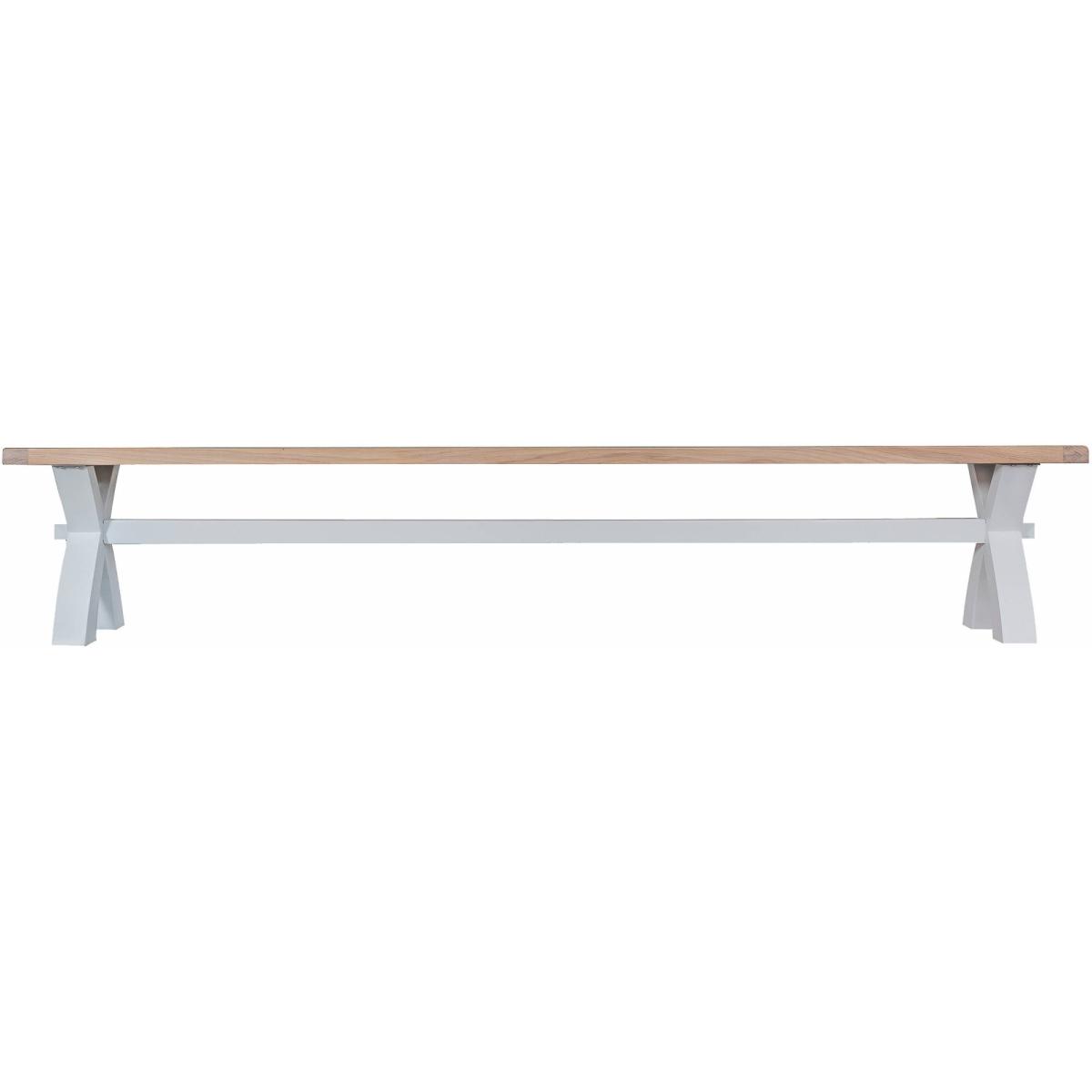 The Tetbury collection of dining furniture comes in a stylish grey painted finish with chunky gently lime-washed contrasting oak seat.. Blending both classic and contemporay influences these Tetbury grey painted benches have a style of their own. Choice of small or large bench Painted Finish Oak seat Dimensions : Small Bench  180cm W x 46cm H x 38cm D                                       Large Bench  250cm W x 46cm H x 38cm D