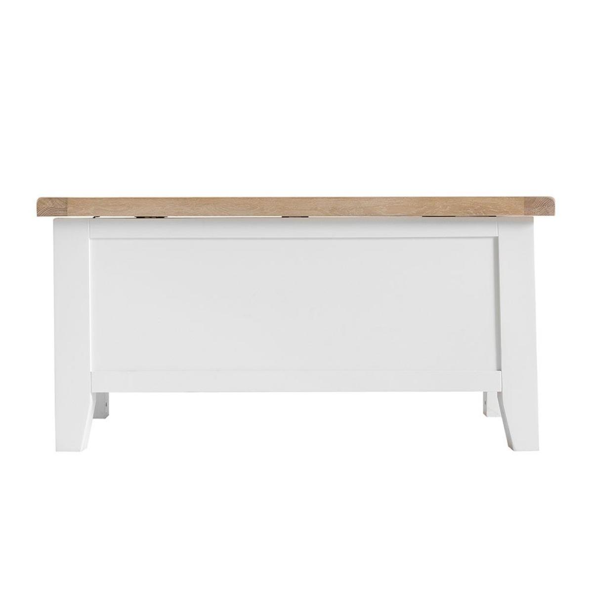 Our Tetbury Blanket Box is the perfect place to store blankets and throws and would be a beautiful addition to the bedroom. Painted in a soft white colour with a natural finish on the oak lid this blanket box would look great along with the rest of the Tetbury bedroom collection.