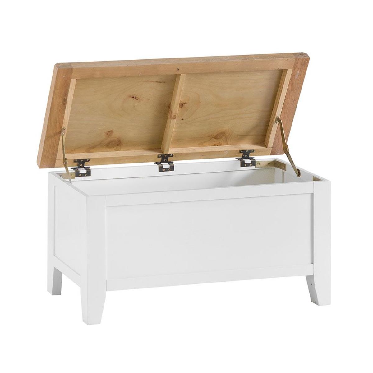 I love this blanket box for its versatile charm and practical function. The painted oak finish of the base provides a light, fresh look that works particularly well in country or coastal interiors, but it can also add a touch of rustic charm to more contemporary spaces. Its neutral tones make it easy to style alongside various colour palettes. For styling tips, consider using it at the foot of a bed or as additional seating in a lounge, pairing with woven baskets or patterned textiles for a cosy feel. Inside, it’s perfect for storing throws, cushions, or even children’s toys, helping keep the space organised without sacrificing style.