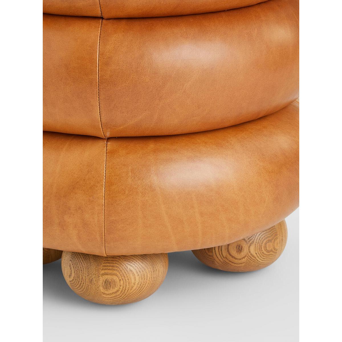 As seen in 180 House, the Tetbury footstool is upholstered inleather and constructed into a tiered design with soft cushioning. We use footstools in the Houses because they're so versatile,doubling up as extra seating for guests, or a side table with atray on top. They're also compact enough to be tucked away when youdon't need them. Leather footstool. Solid oak bun feet. Padded cushioning. Tiered design. Inspired by 180 House.
