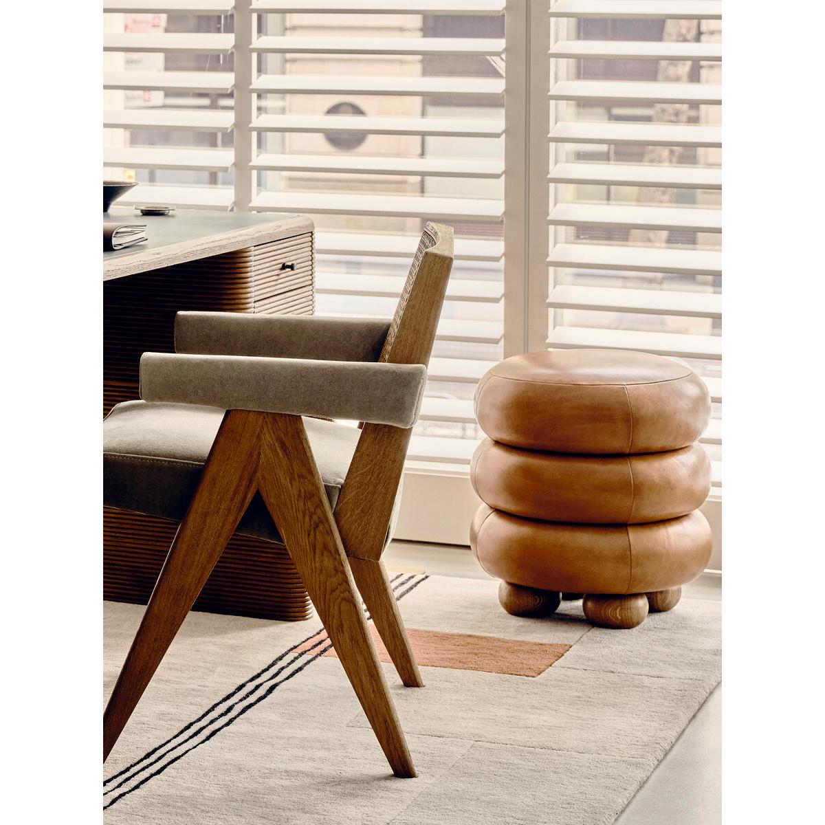 I love this piece for its blend of natural materials and timeless design; the sycamore wood with leather creates a warm, tactile aesthetic that works well in both classic and contemporary interiors. It’s versatile enough to serve as extra seating in a living room, a sturdy stool at a vanity, or even as a side table when topped with a tray. Practical styling tips include pairing it with neutral tones to highlight its natural beauty or adding colourful textiles for a more vibrant look. The stool’s compact size and sturdy construction make it adaptable across various spaces, especially where a relaxed, artisanal vibe is desired.