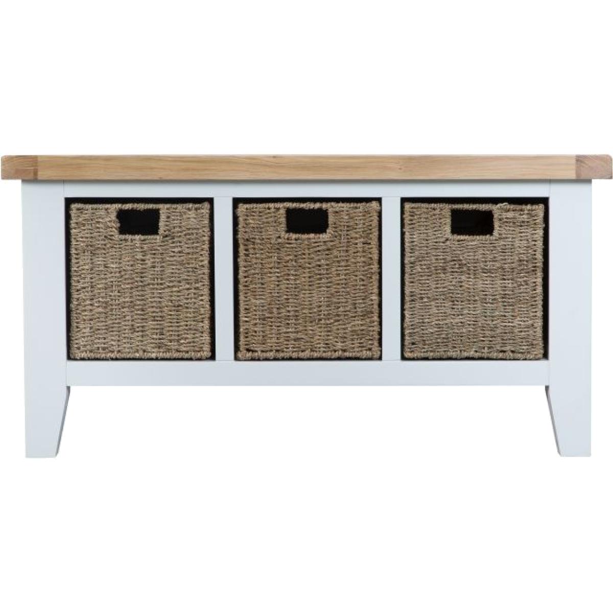 The Tetbury collection of hall furniture comes in a stylish white painted finish with chunky gently lime-washed contrasting oak tops. The bench can be bought separately or add the top to give a space to hang coats and hats keeping your hall tidy. Blending both classic and contemporay influences these Tetbury white painted Hall Bench and Top have a style of their own. Bench Top 100cm W x 50cm H x 15cm D.
