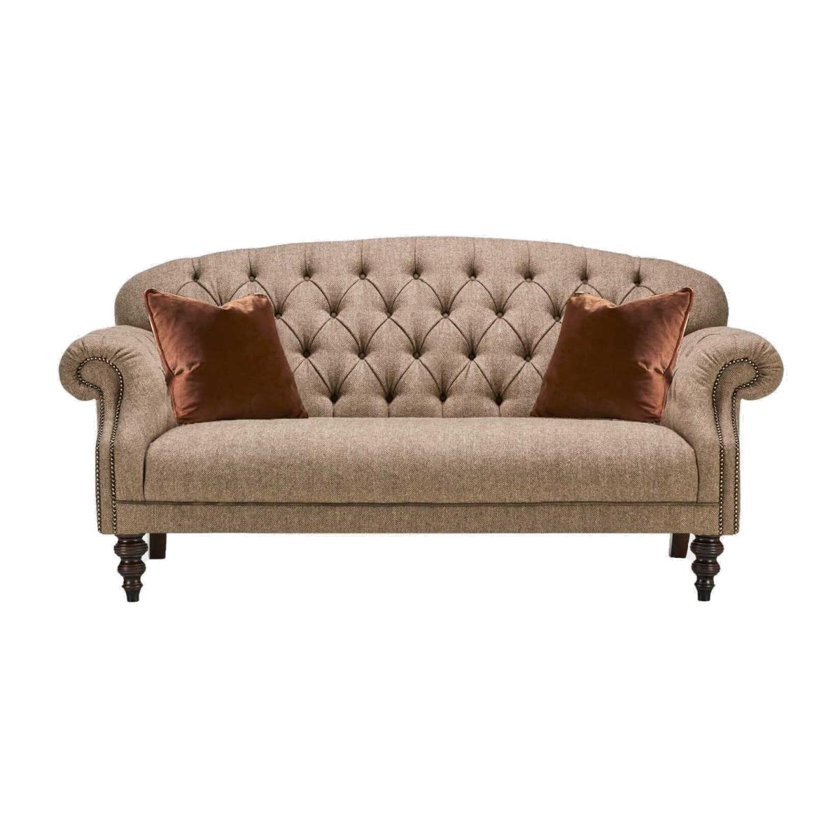 The Arbroath Brown Fabric Petitnbsp;Sofa is an intimate retreat of soft elegance and sturdy craftsmanship. Built on a hardwood and plywood frame, glued, screwed, and dowelled for ultimate durability, it promises lasting comfort. The serpentine sprung base, paired with high-resilience foam, cradles you with gentle support, while the back, adorned with deep-buttoned detailing, enhances its timeless appeal. Supported by beautifully shaped hardwood legs, this chair is a perfect blend of cozy luxury and sophisticated design, inviting you to sink into pure relaxation nbsp