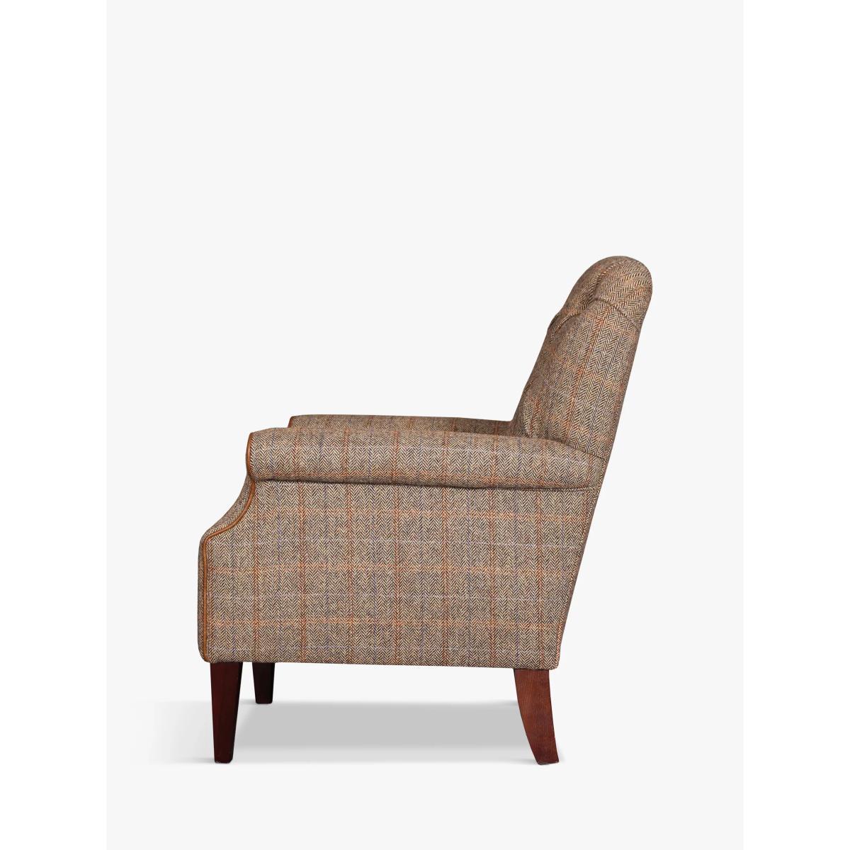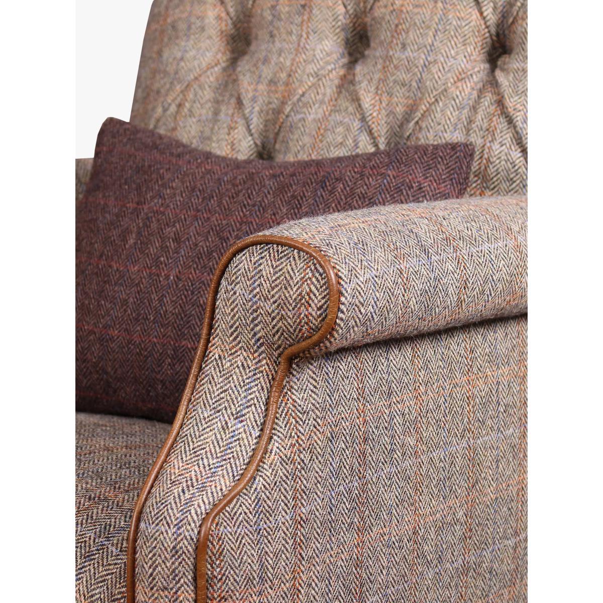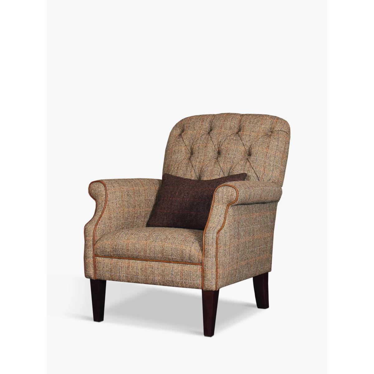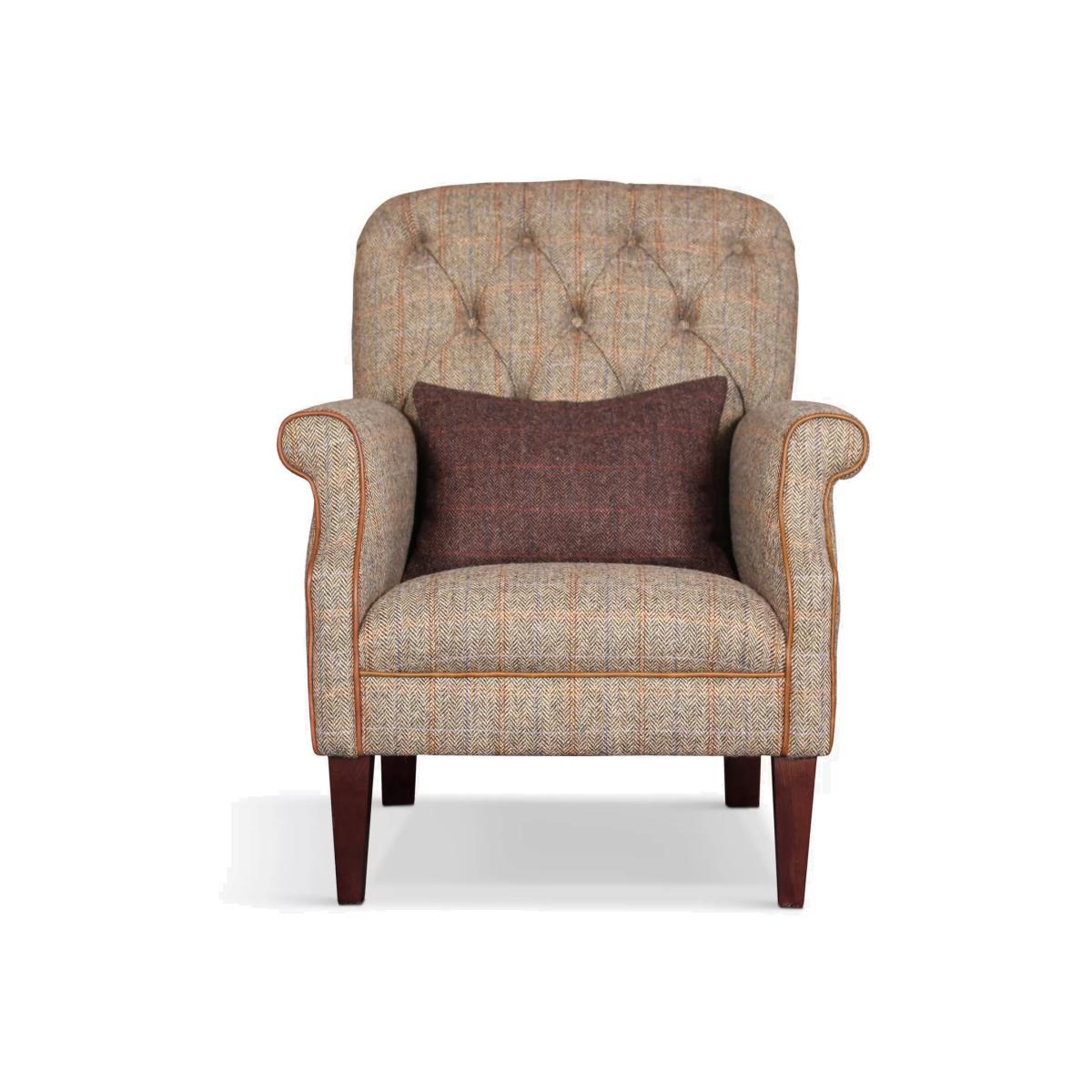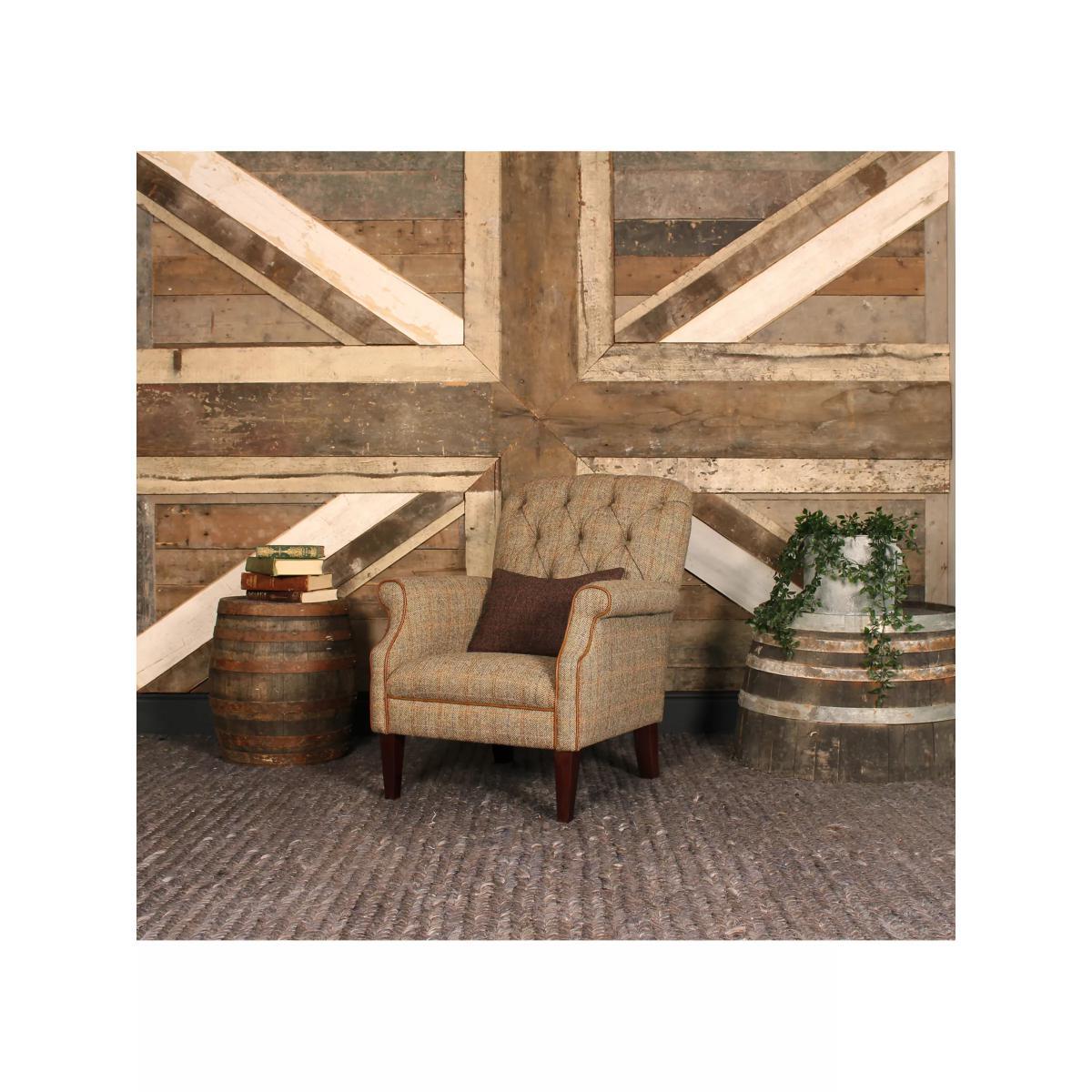 Product Information A beautifully proportioned chair that combines simplicity and comfort, Flynn II from Tetrad features traditional button-detailing across the back and handmade legs. It's upholstered in a choice of genuine Harris Tweed fabrics which are special because they're made from wool dyed, spun and handwoven by islanders in the Outer Hebrides of Scotland. The leather piping around the seams also adds an extra accent. Want to see it first? You may want to see and get a feel for the furniture in one of our shops before ordering. We'll be able to tell you where the range you'd like to view is on display.