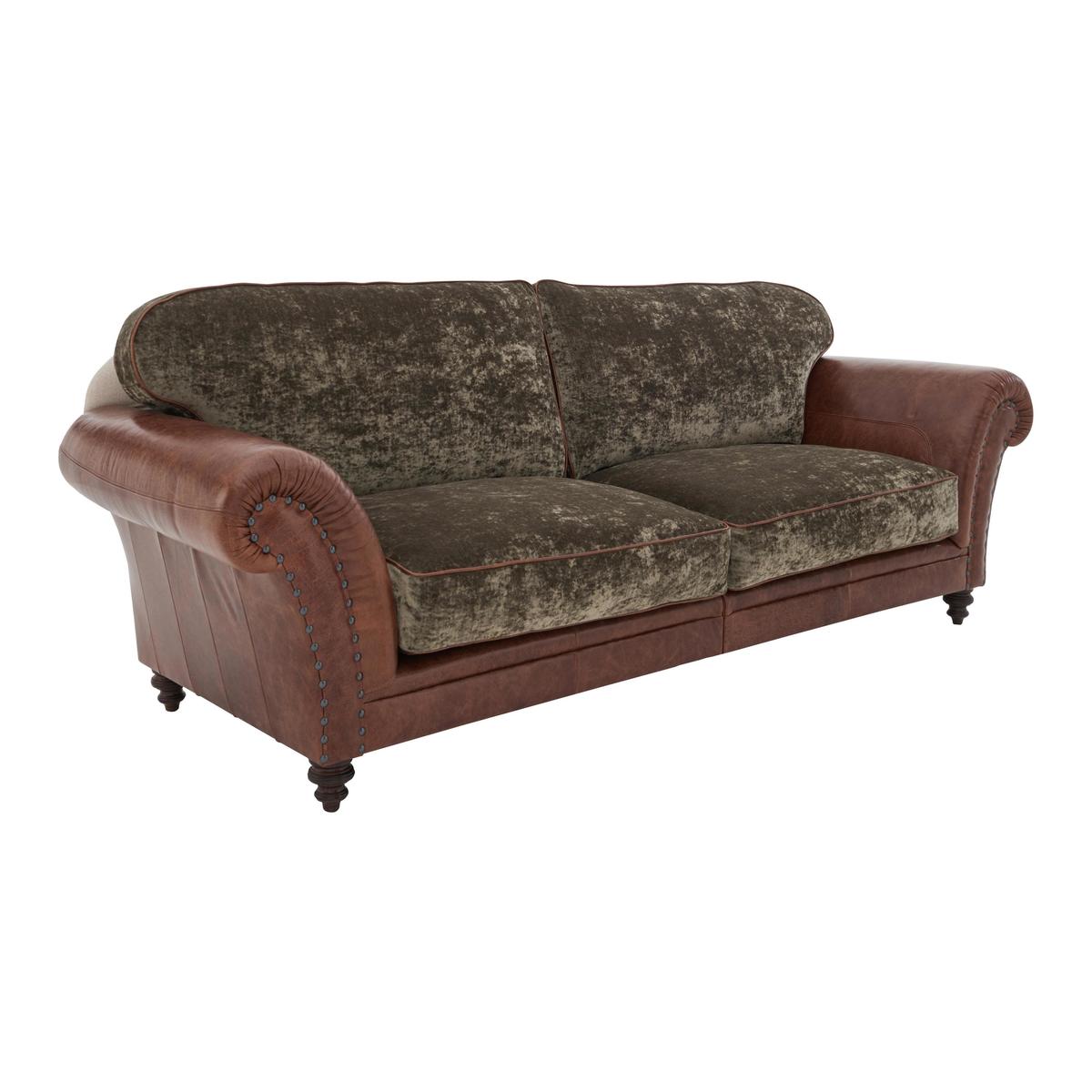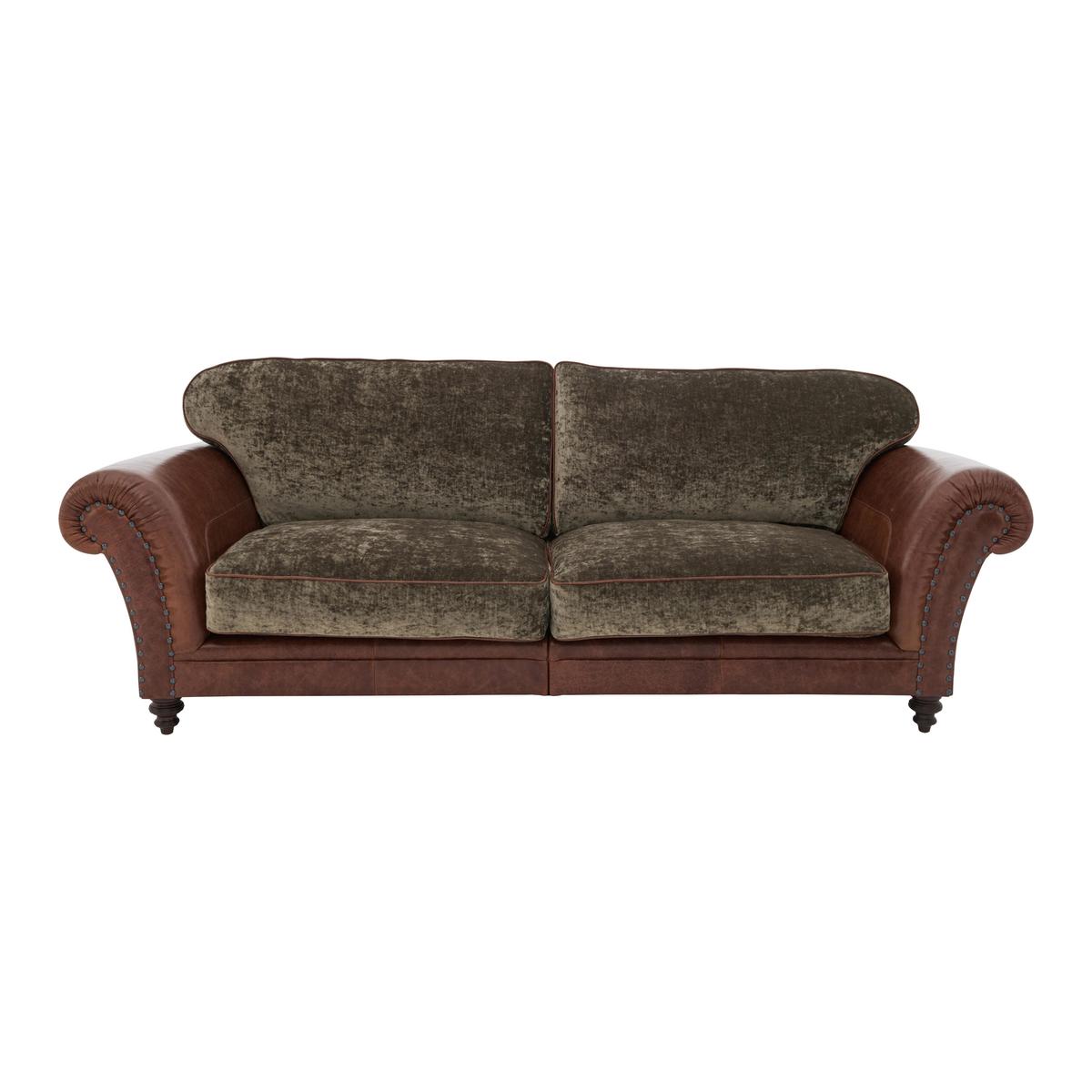 In soft velvet and character leather. Sprung seats with feather filled seat cushions. Hand crafted in Lancashire. Introduce characterful charm and elegant sophistication to your living room with the Tetrad Northwood three seater classic back leather and fabric sofa. Upholstered in a rich glossy leather and plush velvet for a sumptuous feel, experience the expert craftmanship of a Tetrad sofa. Supported by turned hardwood legs finished in dark mahogany and a sturdy hardwood frame, this stunning British-made sofa is built to last. Experience luxury comfort with sprung seats and luxury fibre filled back cushions and sink into roomy comfy seats. Elegantly scrolled arms are complemented by hand studded arm detailing for a look of laid-back luxury. For added comfort and style, a beautiful Khaki throw and additional scatter and bolster cushions are available to purchase separately. With lighter finishes available for the hardwood feet, foam filled seat cushions and a range of gorgeous leather and velvet upholstery options you can create your perfect look. Simply call us on 0800 804 8879 for all the design options. Exclusive to Furniture Village, the Tetrad Northwood three seater classic back leather and fabric sofa is part of the elegantly stylish Tetrad Northwood collection. Did you know? Natural leather has unique marks and characteristics with variance in colour and texture, and softens with use. Some fabrics can show wear on areas of more use or in direct sunlight. To keep your fabric upholstery looking fresh, plump, turn and rotate seat and back cushions regularly if possible.