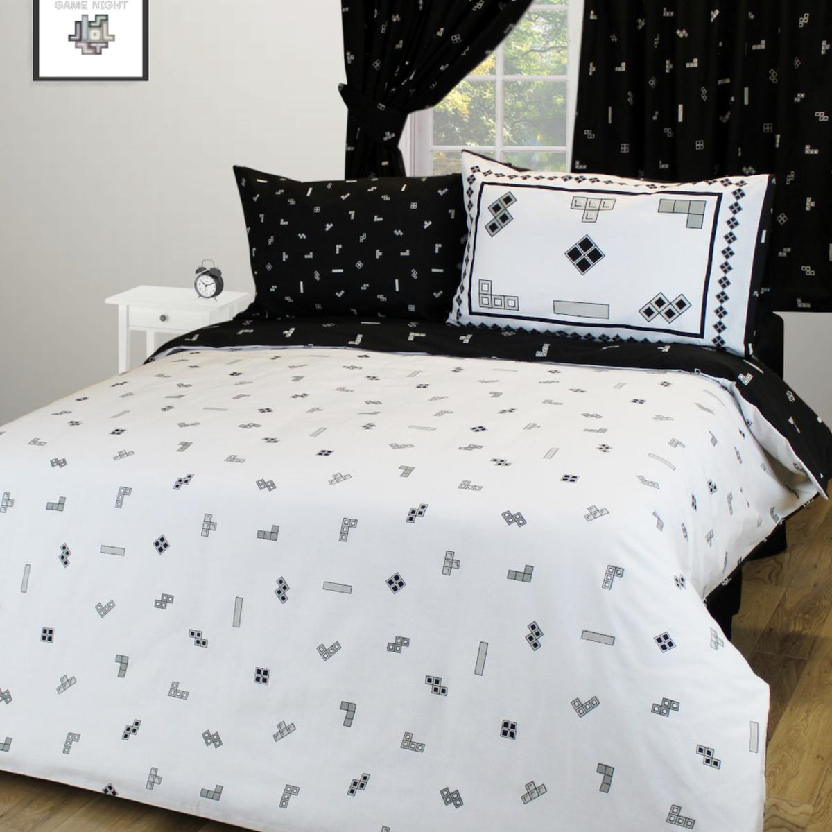Funky Tetris print filled cushion, with scattered Tetriminos print on a white ground. Will a unique decorative touch to any room. Matching accessories such as bedding, curtains, table cloths and bean bags are available separately.
