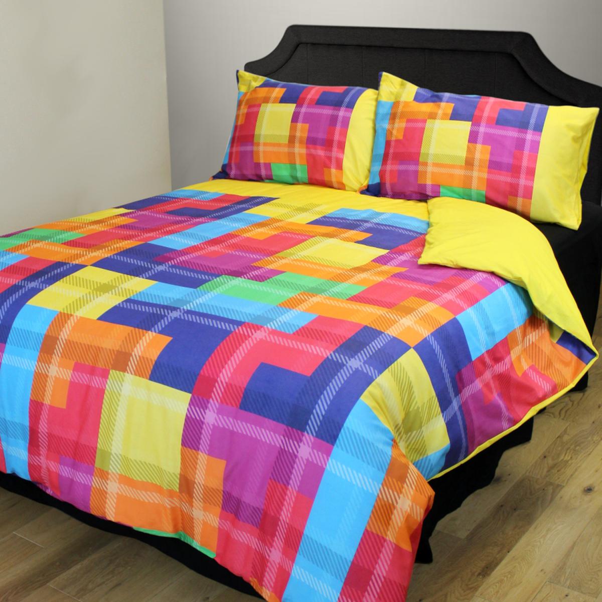 Tetris Tartan Duvet Cover And Pillowcase Set - Multi / 1.8kg / King