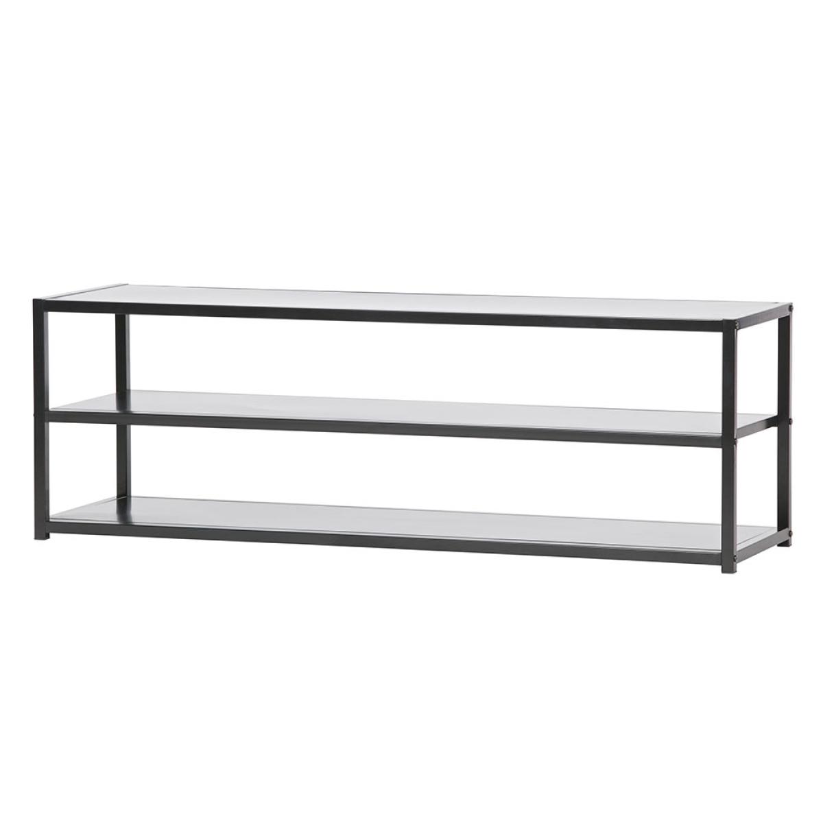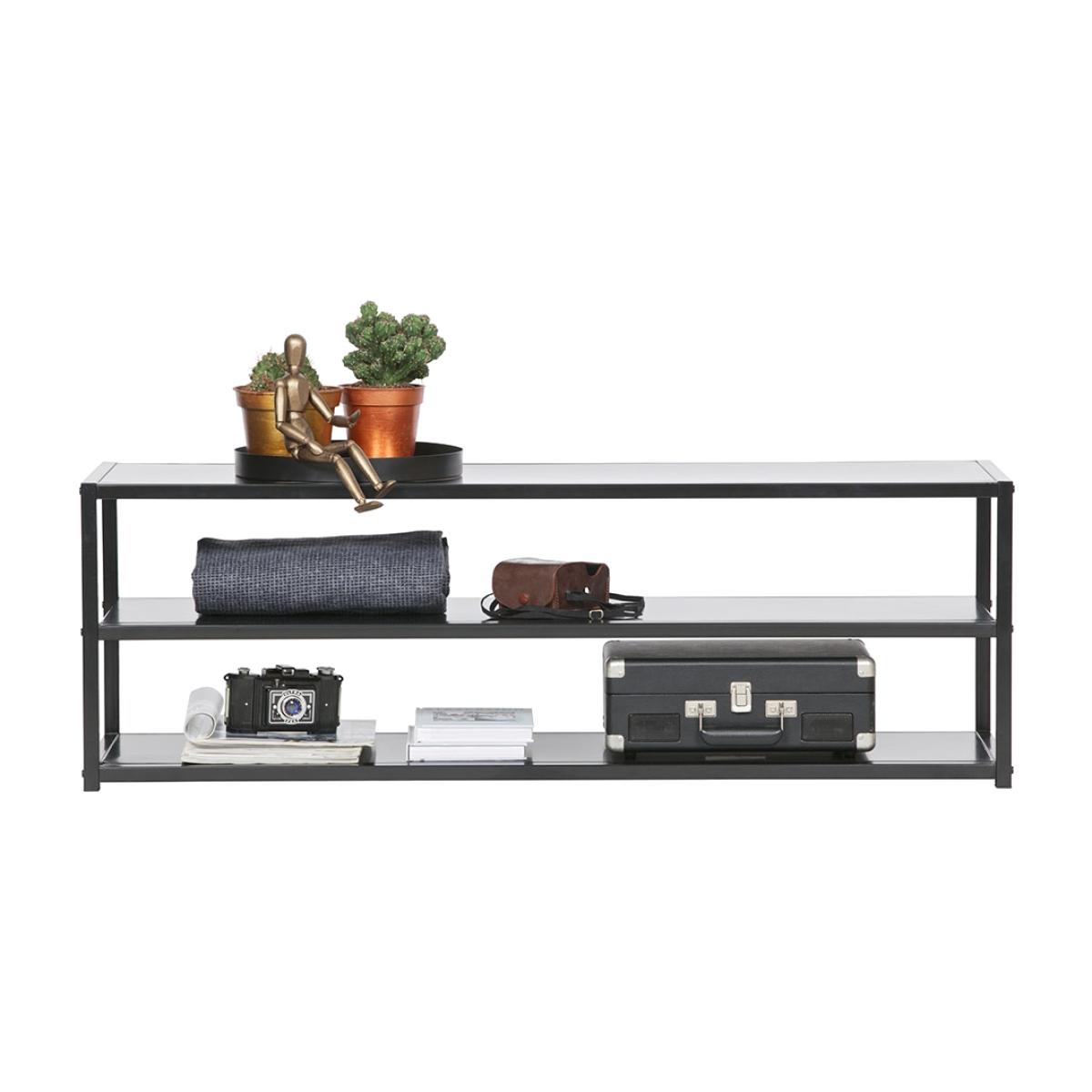 Keep your home entertainment organised with the Teun TV Unit from Woood. With a simple metal frame and metal shelves, both finished in black, the sleek, contemporary design will blend in seamlessly with your interior style. The three shelves offer up plenty of space for that DVD player, TV box and games console. But you don't just have to limit this beauty to a TV stand! It would also work perfectly as a low side table. Pop that succulent collection, some knick-knacks and your favourite books and you're ready to go!.