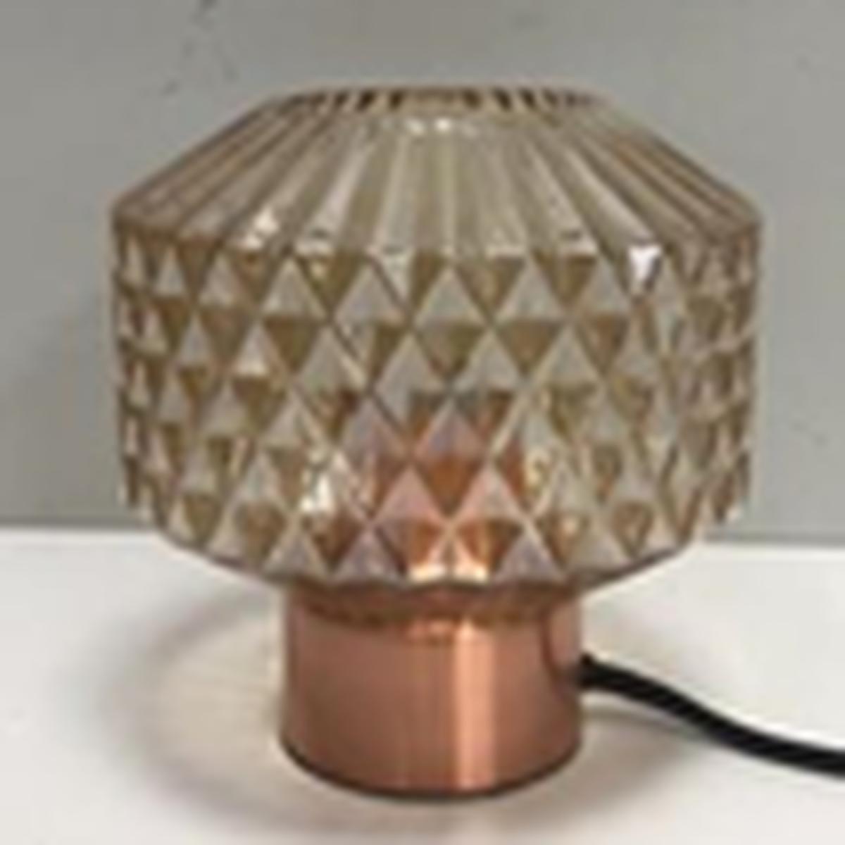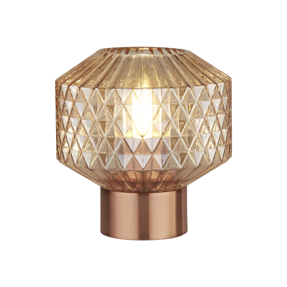 Beautifully detailed design is the amber glass table lamp with a textured base. Simple but decorative to add to your home.