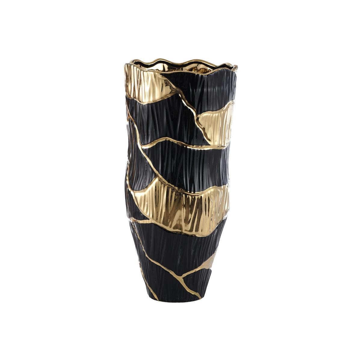 Add a touch of elegance to your home with this black and gold textured ceramic vase. Designed to be a stunning accent piece, it brings sophistication to any room, whether displayed on its own or with floral arrangements. Perfect for modern or classic interiors, this vase combines a sleek design with a luxurious finish, making it an ideal centerpiece for your living room, office, or entryway. Crafted from high-quality ceramic, it is both durable and stylish.