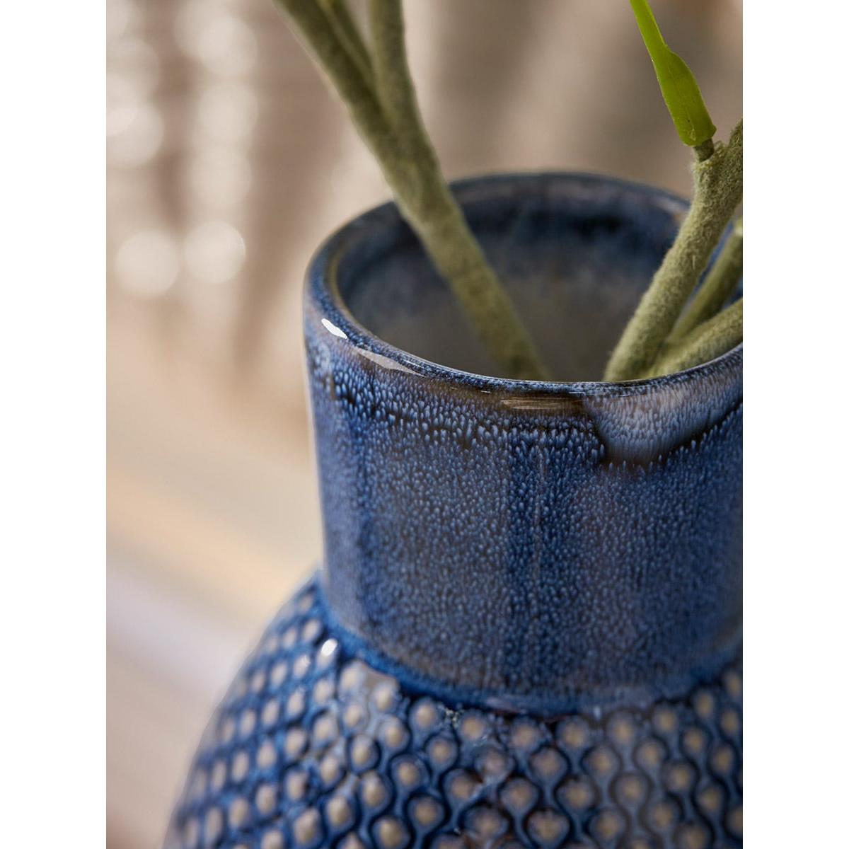Simple and clean lines create a bottle shaped vase that oozes elegance and sophistication in your home. Crafted from a delicate porcelain, the dainty dotted textural detailing adds intricacy and interest to the vase. Blue tones surround the vase, perfect for a home that sits within our French Blue collection and creates a wonderful contrast to the bright colours of your florals and greenery, for a fresh and inspiring finish to your home.