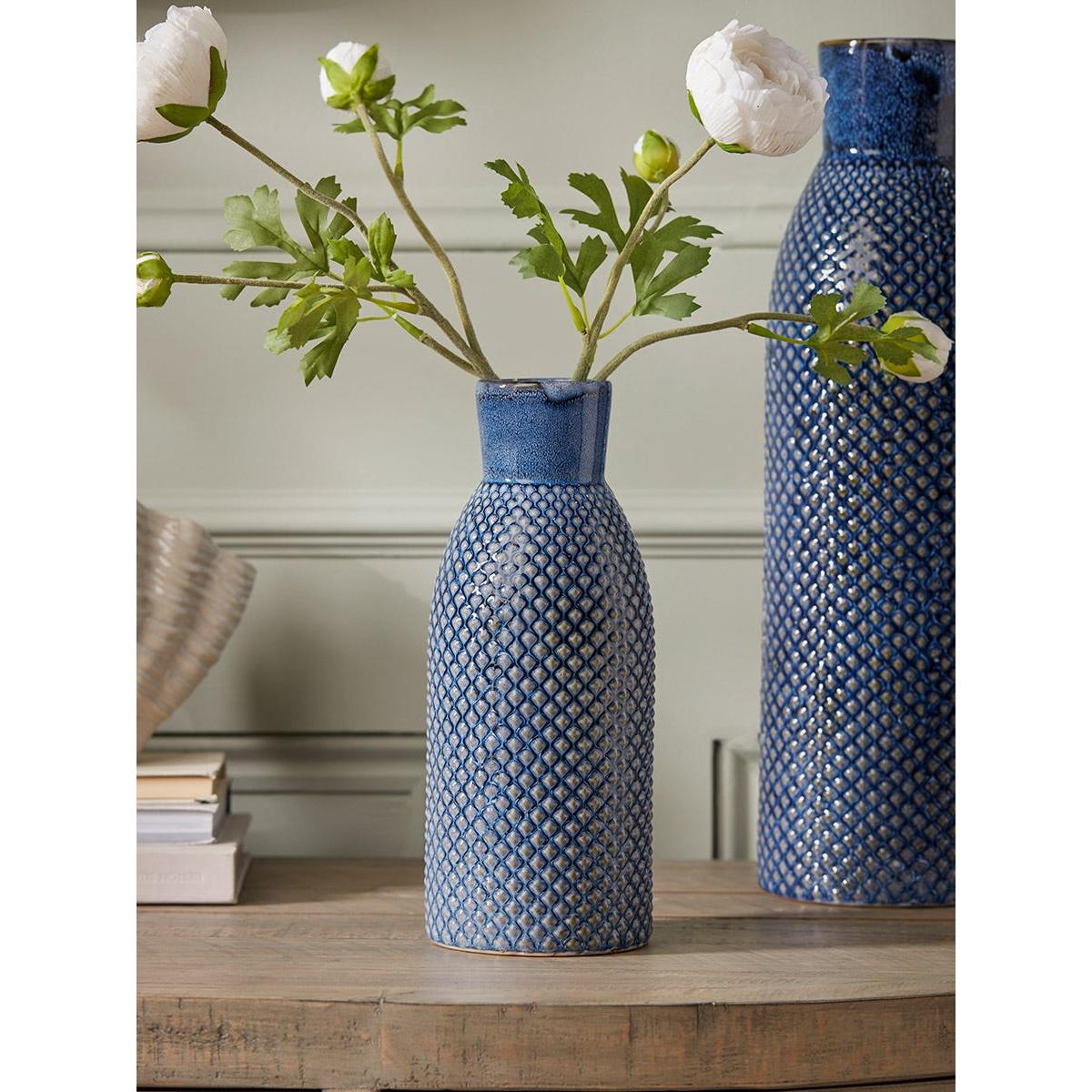 Simple and clean lines create these ottle shaped vases that will ooze elegance and sophistication in your home. Crafted from a delicate porcelain, the dainty dotted textural detailing adds intricacy and interest to the vases. Blue tones surround the vases, perfect for a home that sits within our French Blue collection and creates a wonderful contrast to the bright colours of your florals and greenery, for a fresh and inspiring finish to your home.