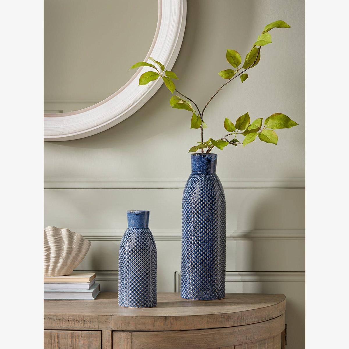 I really like this textured bottle vase for adding visual interest without needing much effort. Its tactile surface and rich blue tone make it versatile, working well in both contemporary and classic interiors. I’d suggest using it as a subtle statement piece on a sideboard or shelf, paired with fresh or dried flowers to bring colour and life to a space. For practicality, consider grouping a few smaller ones for variation or filling them with greenery to keep things simple and fresh. It’s an easy way to introduce texture and colour that can elevate any room’s style with minimal fuss.