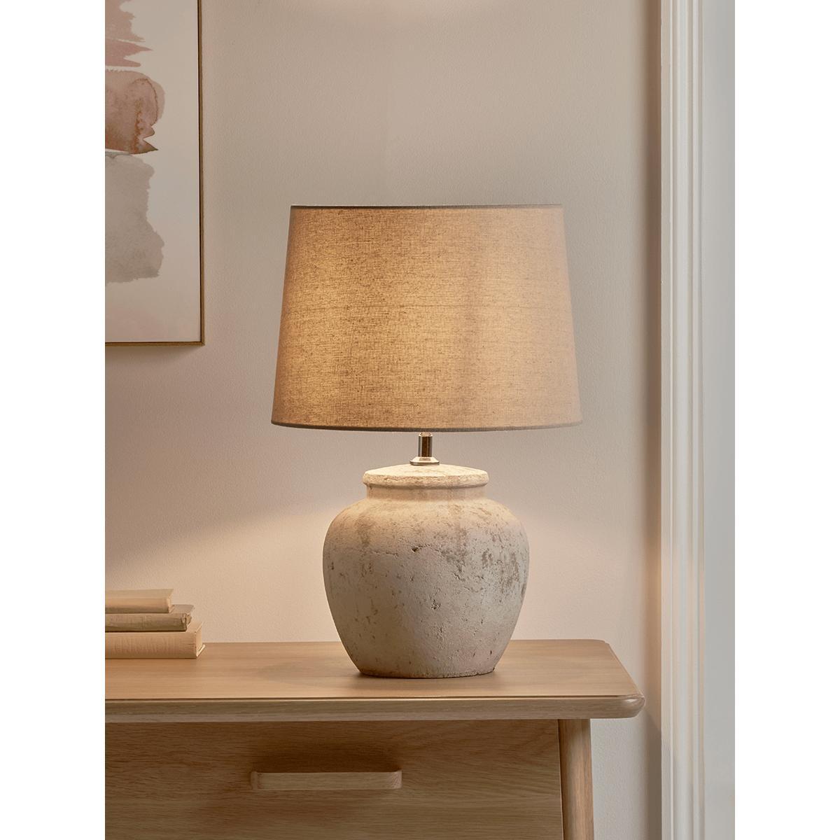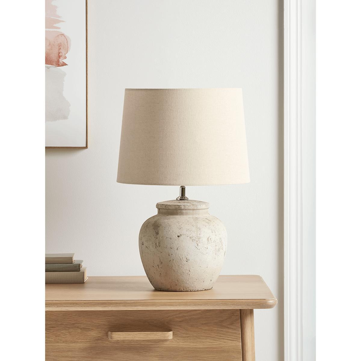 With a base crafted from cement to create a laid back, shabby-chic style that will slot easily into any home aesthetic, combined with a neutrally toned fabric shade to soften and balance the look, our Textured Cement Table Lamp will bathe your space in a warm glow. See this lamp brighten up your home from atop one of our. Console Tables. Discover how to create the perfect lighting scheme for your home using our. Lighting Buying Guide.