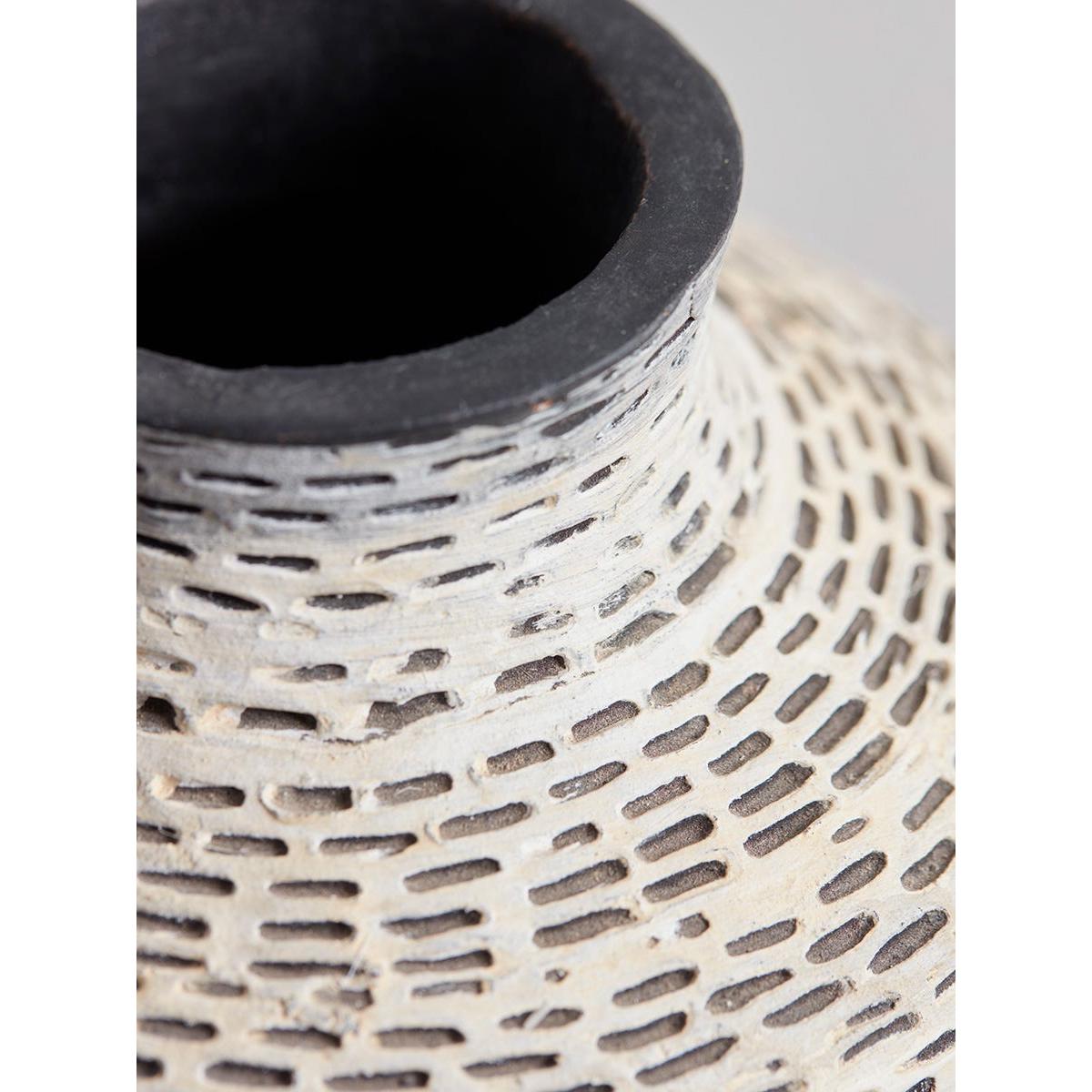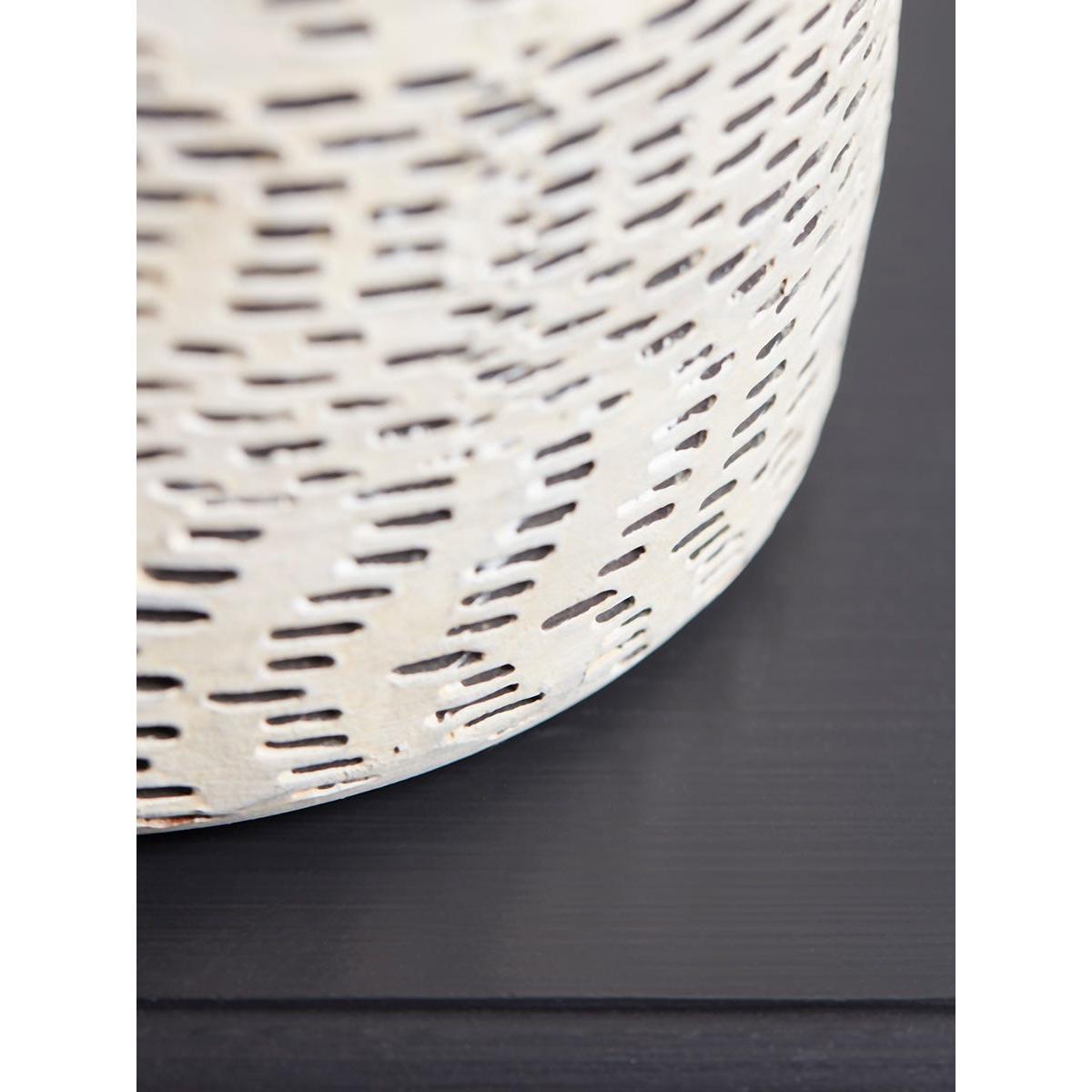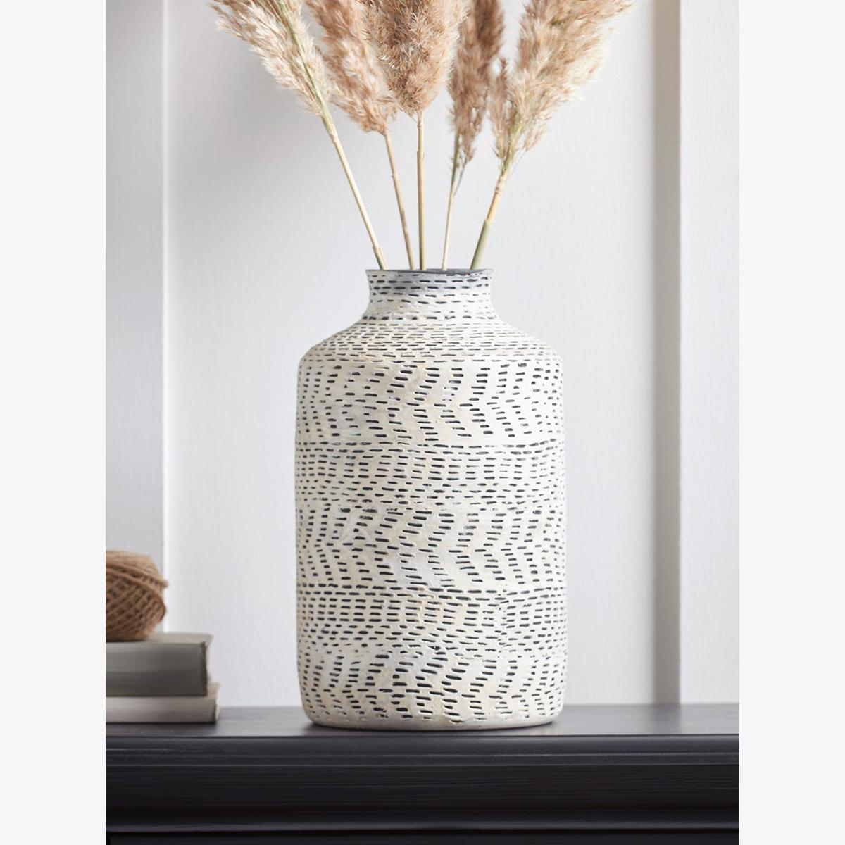 A delicately etched chevron pattern brings wonderful texture to this monochrome ceramic vase. Display on shelves or tables to bring depth and character to a neutral scheme, with or without seasonal blooms and foliage.
