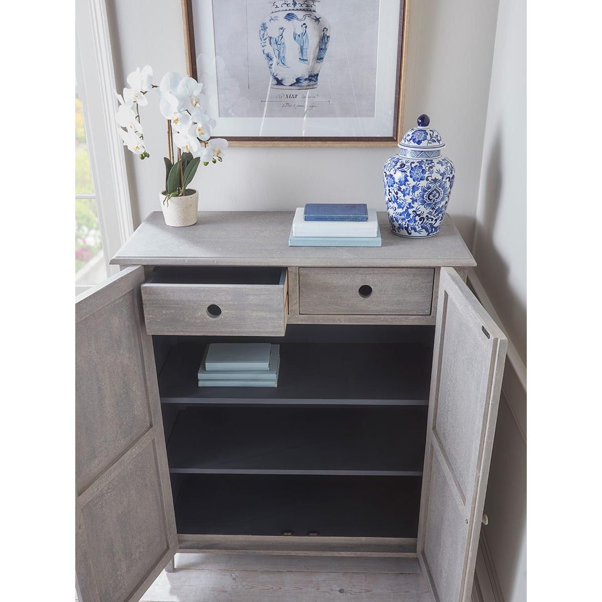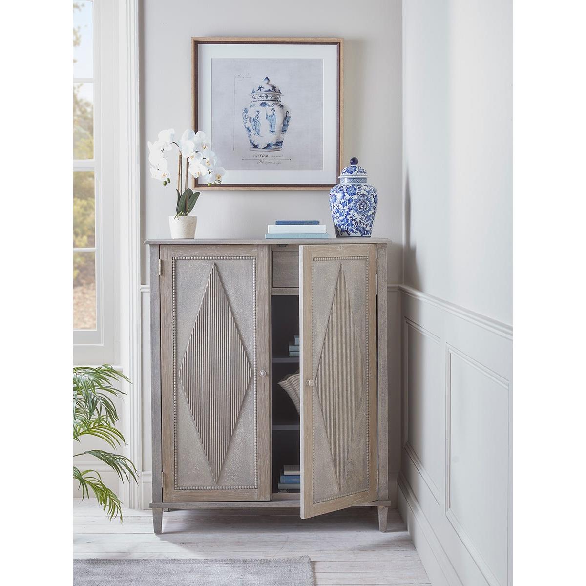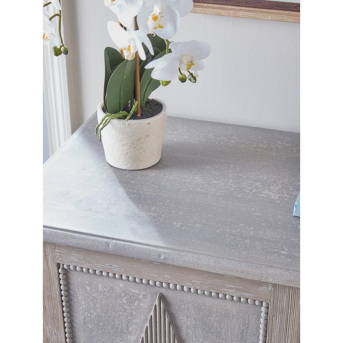I love the texture and geometric detail of this sideboard - it adds visual interest without overwhelming a space. It works particularly well in both contemporary and coastal interiors, where the subtle patterns can complement natural materials like wood or linen. To style it effectively, consider keeping the top surface minimal with a few curated accessories, such as ceramic vases or framed prints, to highlight its craftsmanship. Practical tips include using it for storage of everyday items in a living room or hallway, while letting its design be the focal point. Its neutral tone makes it versatile enough to blend seamlessly into different colour schemes and styles.