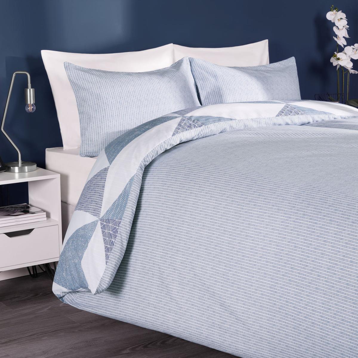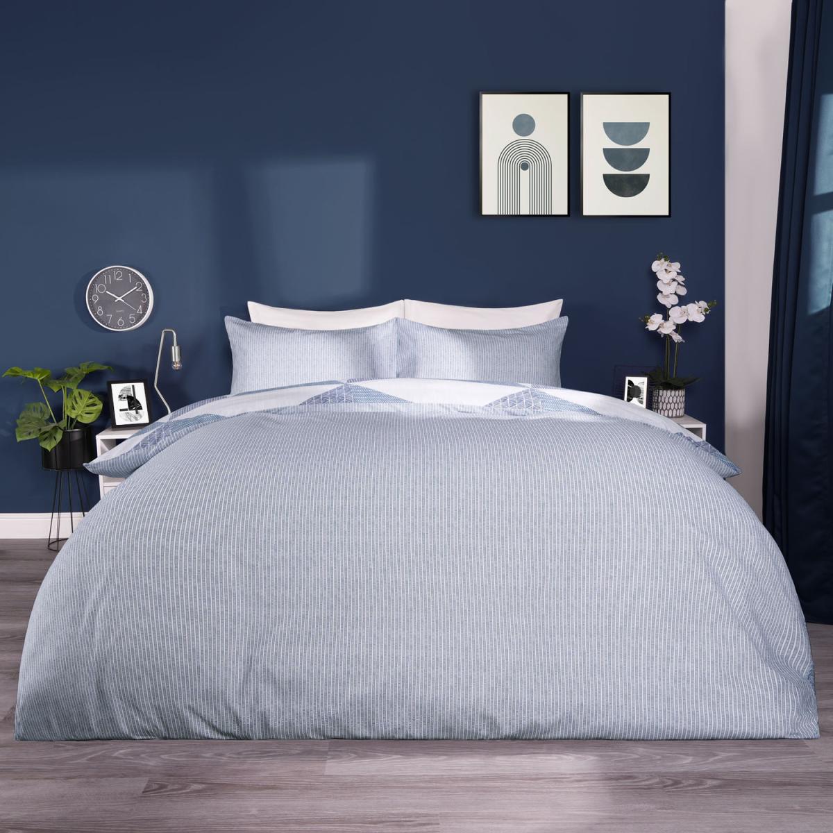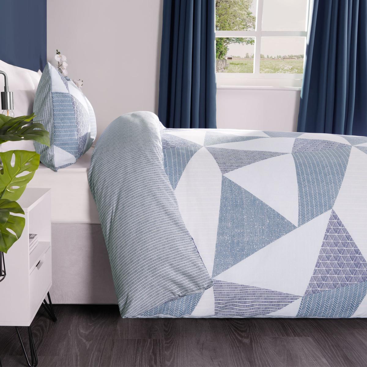 This 2-in-1 reversible duvet cover set from Dreamscene's Premium range will be sure to modernise your room with it's geometric, scandi inspired design. The reverse side features a relaxed stripe print. The set comes with matching pillow case(s). This traditional patterned duvet is made from a soft polycotton blend, 50 cotton and 50 polyester. This bedding set is soft, comfortable and durable, allowing for a relaxing nights sleep. Available in the following sizes- Single 135cm x 200cm (53" x 79") - 1 x duvet cover 1 pillowcase (48 x 75cm) Double 200cm x 200cm (79" x 79") - 1 x duvet cover 2 pillowcases King 230cm x 220cm (91" x 87") - 1 x duvet cover 2 pillowcases Super King 260cm x 220cm (102" x 87") - 1 x duvet cover 2 pillowcases. Please note that this is not a comforter. Material Polycotton - 50 cotton 50 polyester Includes Quilt cover with pillowcase(s) Washing Instructions Machine washable, tumble dry friendly Brand Dreamscene Premium.
