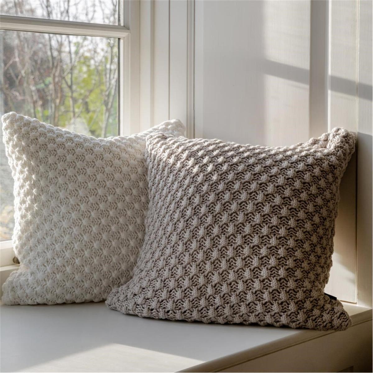 I love this cushion cover because of its versatile, textured knit that adds warmth and visual interest to any space. It works particularly well in cosy, neutral interiors, like scandi or boho styles, where its tactile surface can soften sleek furniture or add a layer of depth to layered sofa ensembles. For practical styling, pair it with other textured or patterned cushions in complementary tones to create a relaxed yet curated look. Its size makes it easy to use on sofas, armchairs, or even beds, making it a smart choice for those looking to introduce a touch of comfort and subtle pattern without overwhelming the space.