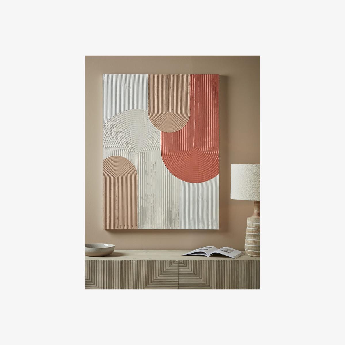 Inspired by the ever so popular plaster trend, this handpainted piece of wall art is layered to create multiple textural effects. Darker earthy tones make up the arch shapes, enhancing the layered effect that the deep and curvaceous lines provide, creating a piece that stands out in your home but provides a neutral enough scheme to blend into a variety of settings.