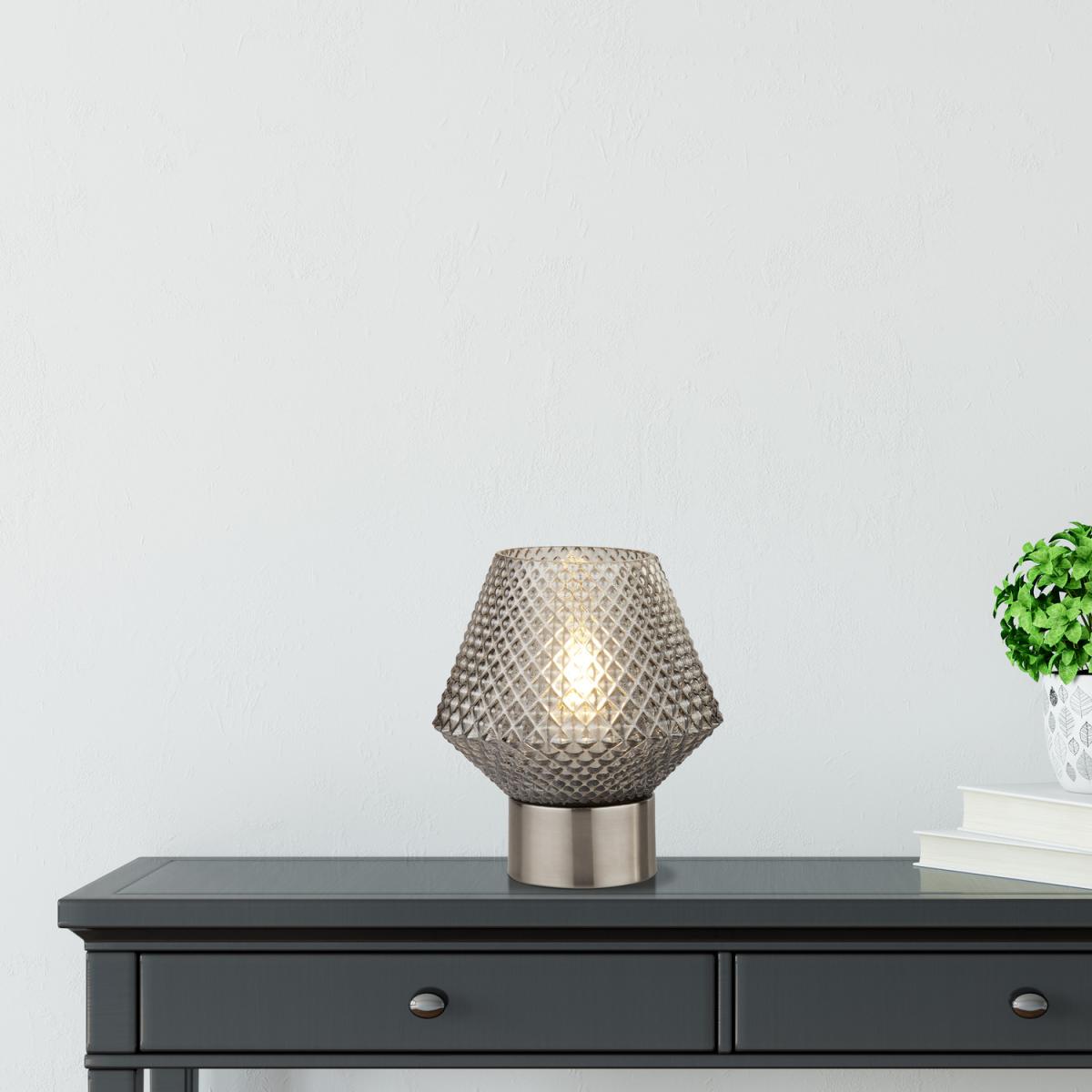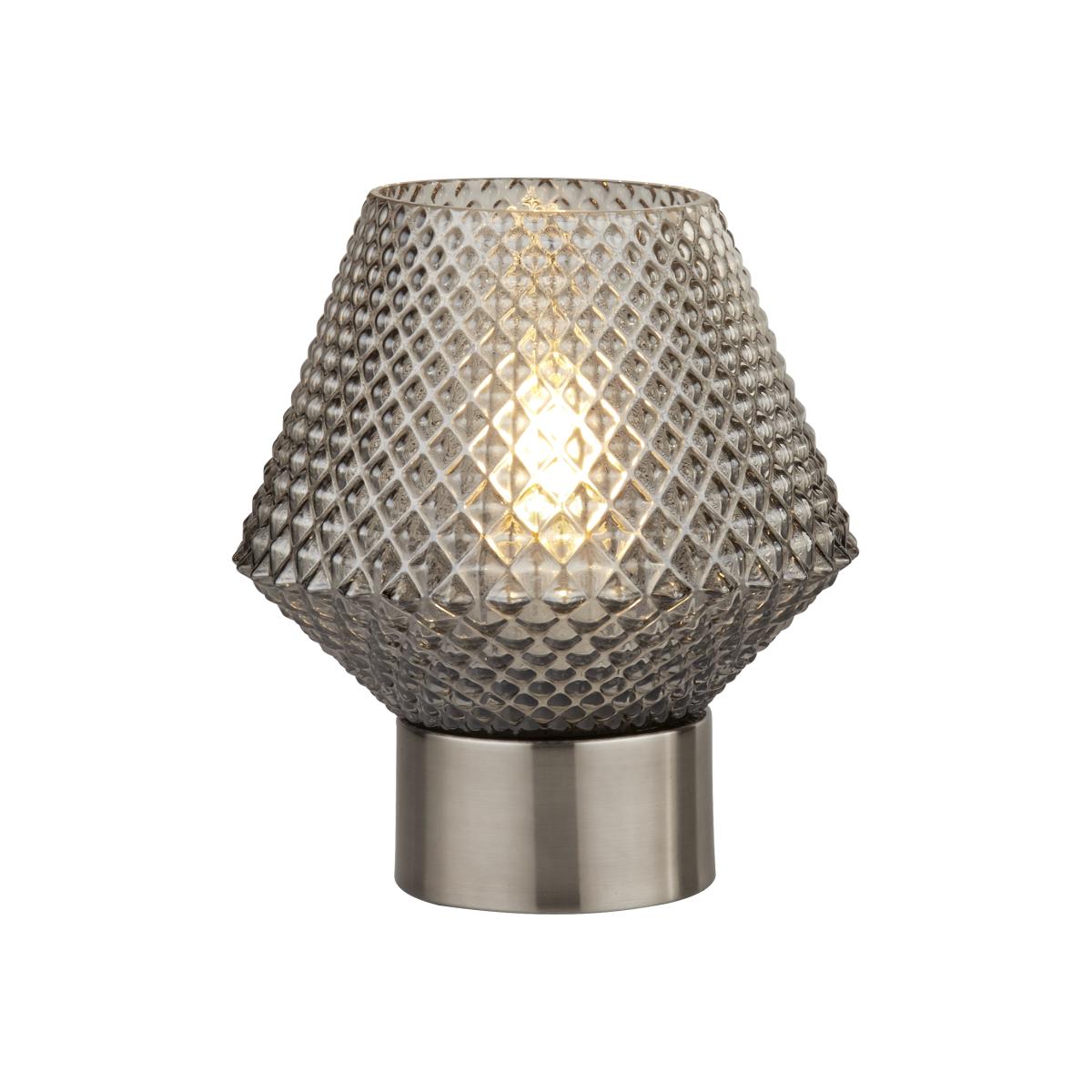 Beautifully detailed design is the smoked glass table lamp with a textured base. Simple but decorative to add to your home.
