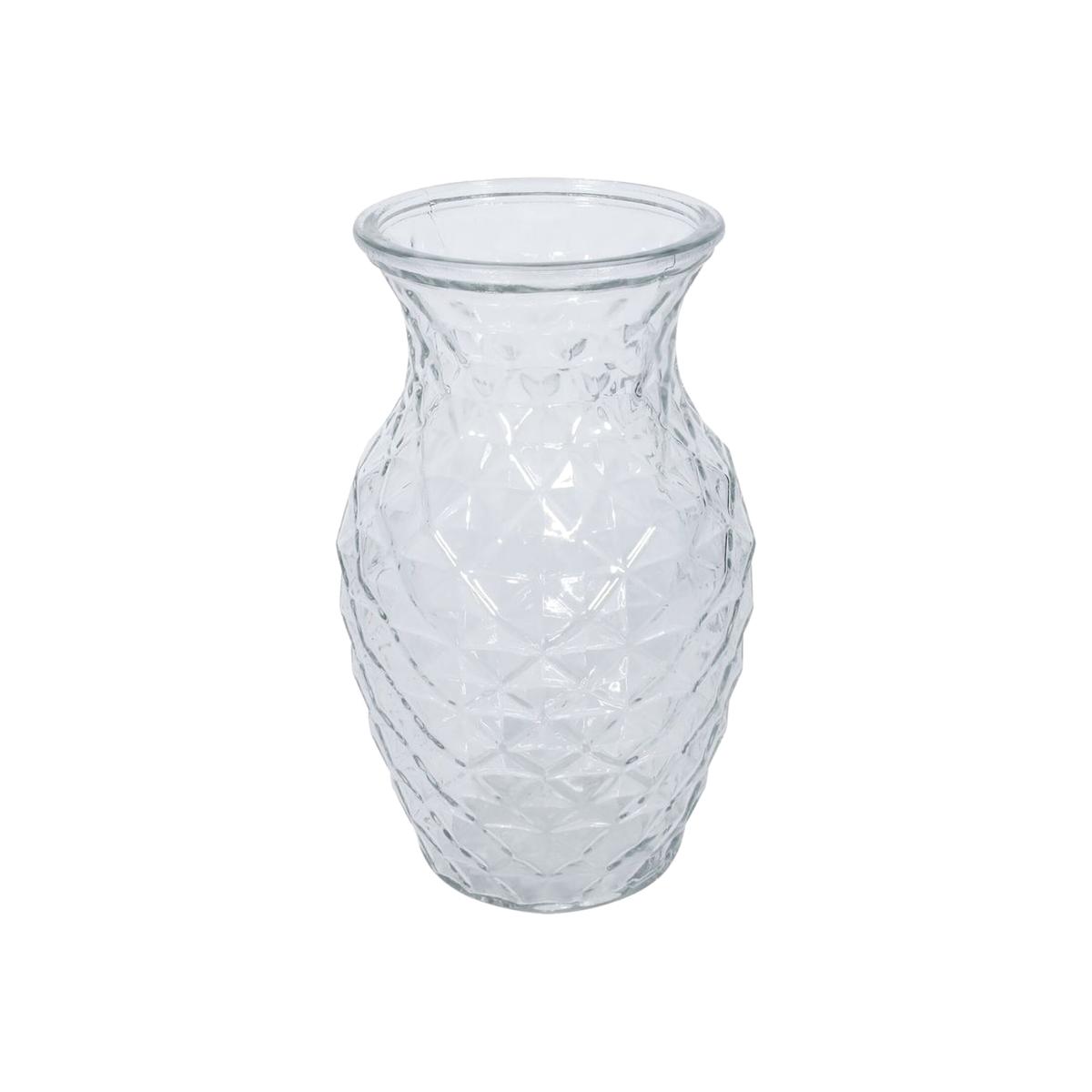 Glass textured vase, elegant design, perfect for displaying a bouquet of fresh flowers from the garden or artificial flowers. The stunning diamond-cut pattern will look glamourous in any interior setting.