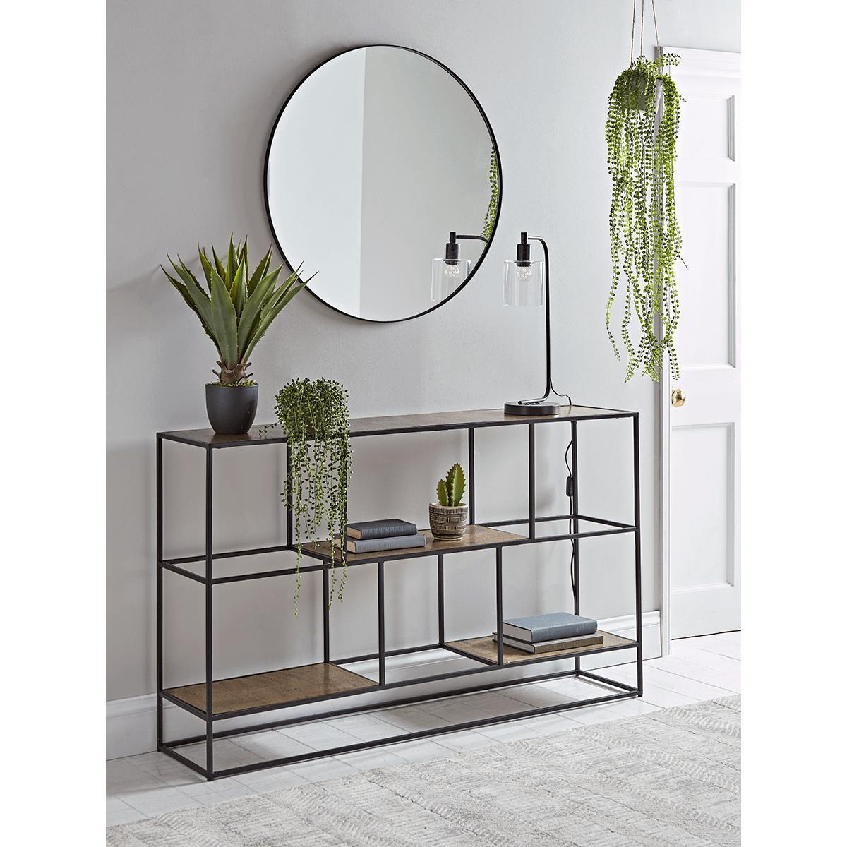 I love this one for its versatility and sleek style. The textured top adds subtle visual interest, making it suitable for both contemporary and industrial interiors. It works particularly well in entryways or living rooms, where it can serve as a practical yet stylish surface for keys, decor, or even plants. To style it effectively, consider layering with a few decorative books or small greens to soften the industrial feel, and keep accessories minimal to highlight the textured surface. It’s a great piece that balances function with a modern edge, making it a smart addition to various home schemes.