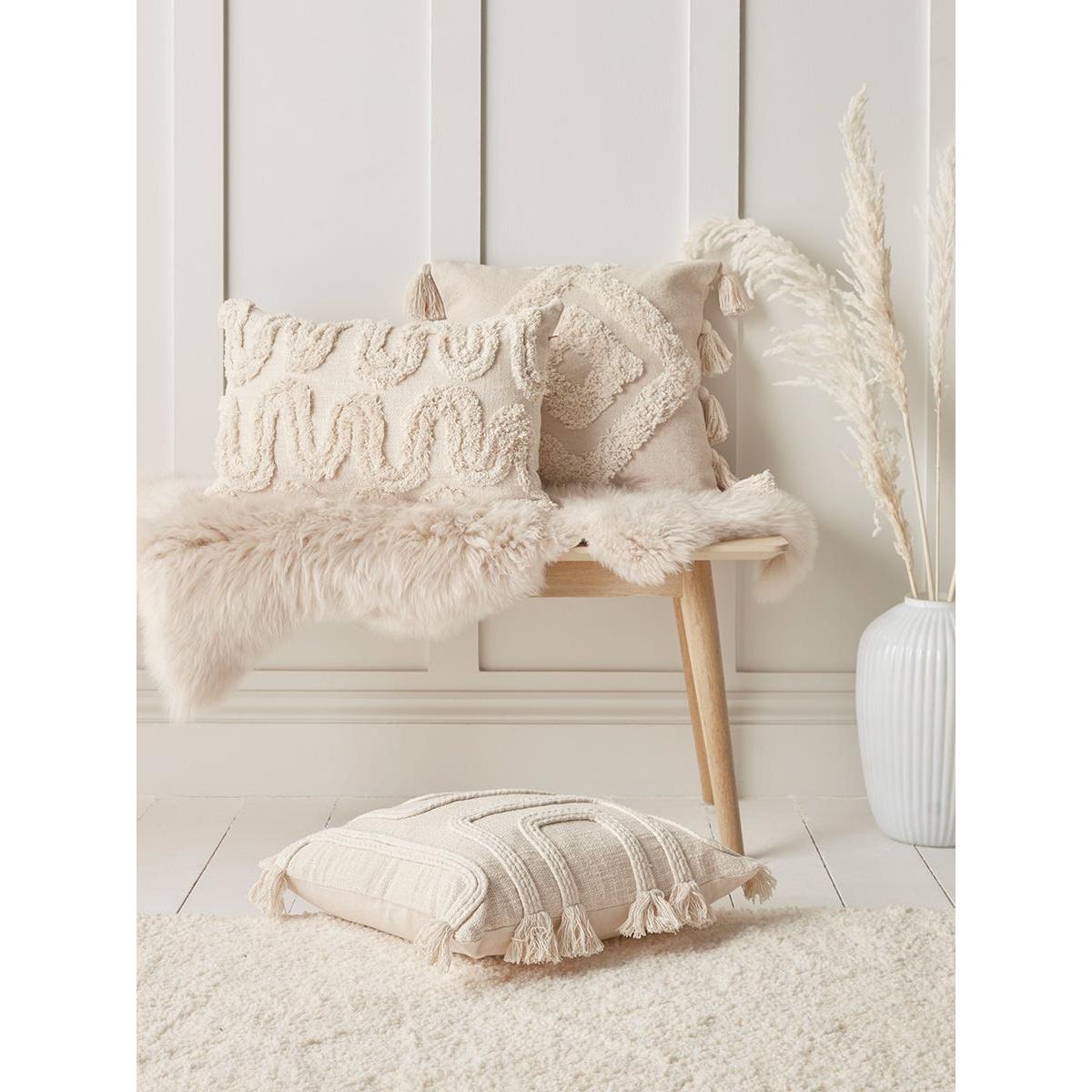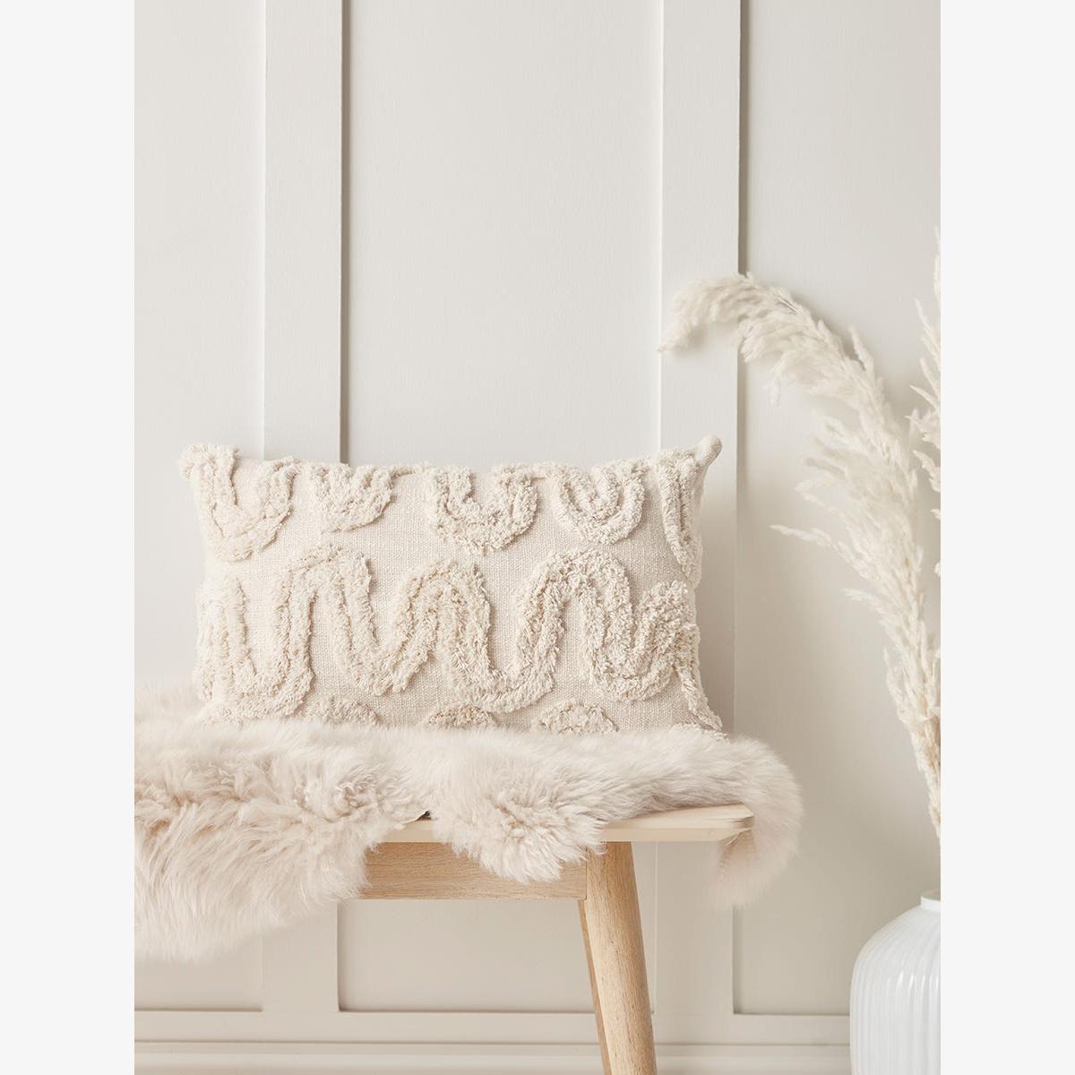 Full of visual texture and also a delight to run your fingers over, this natural toned cushion cover features a serpentine design of tufted cotton to the front and is plain on the reverse. Mix and match with other cushions in a neutral palette for a quick update to your sofa or bed. The cover fits a 40 x 60cm cushion pad (available separately).