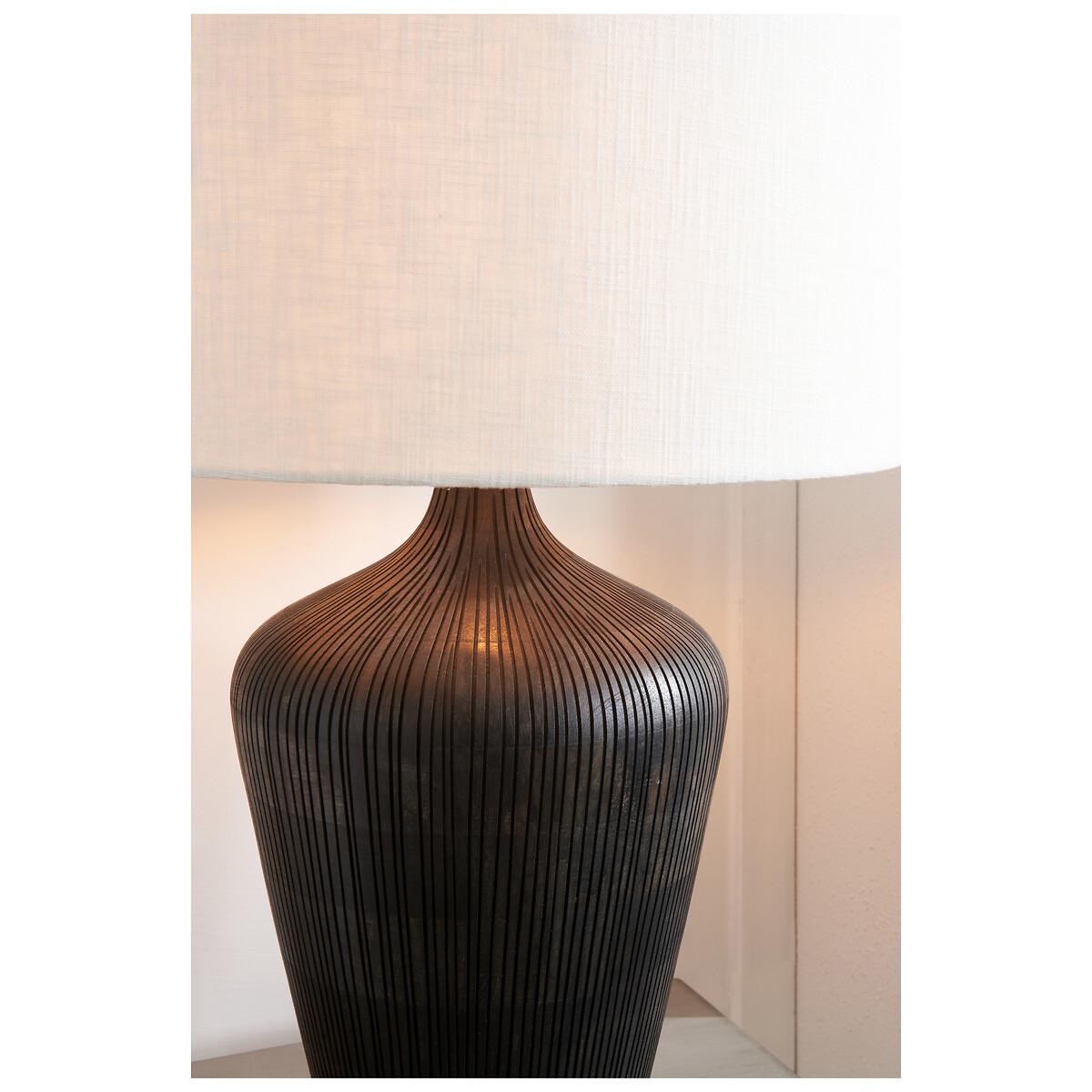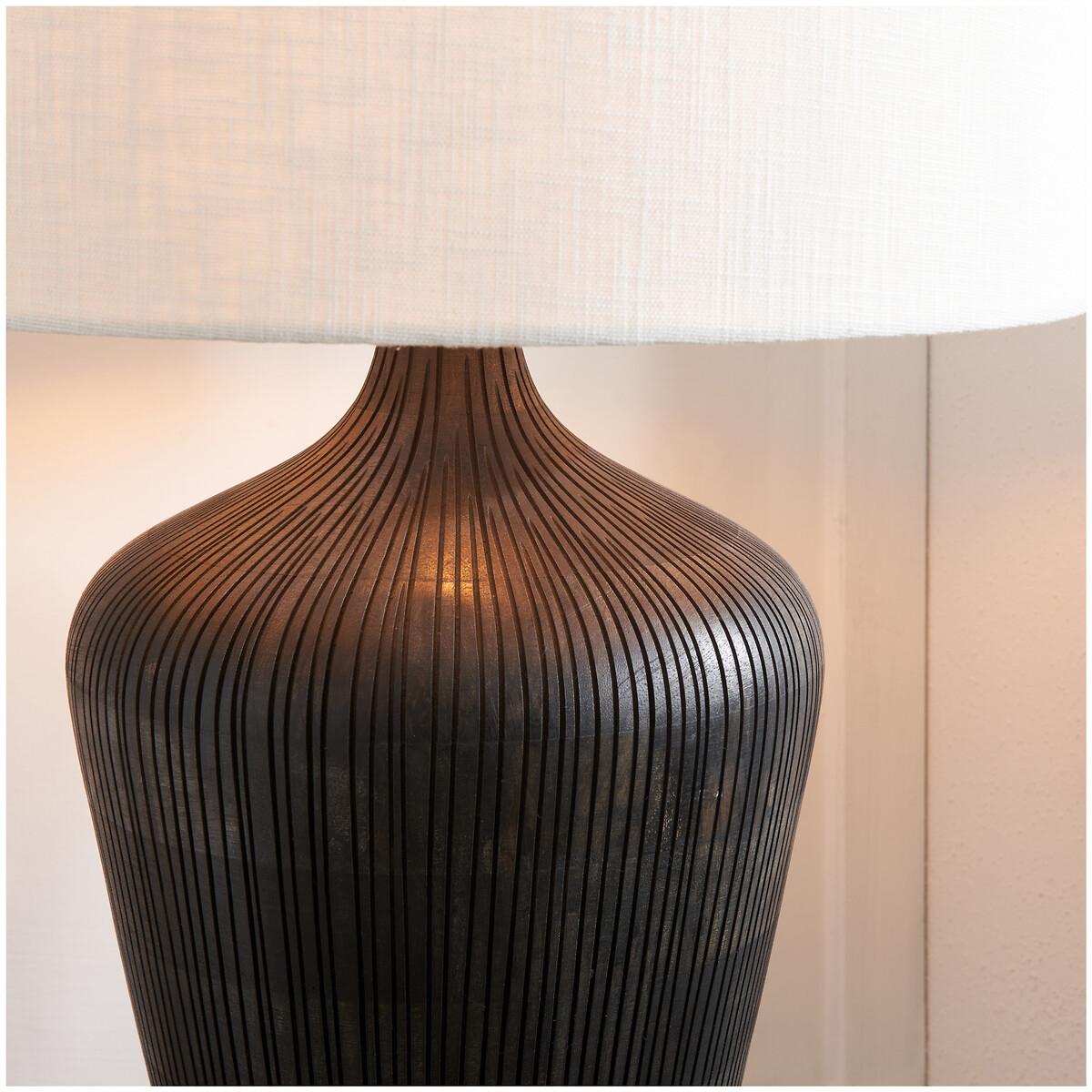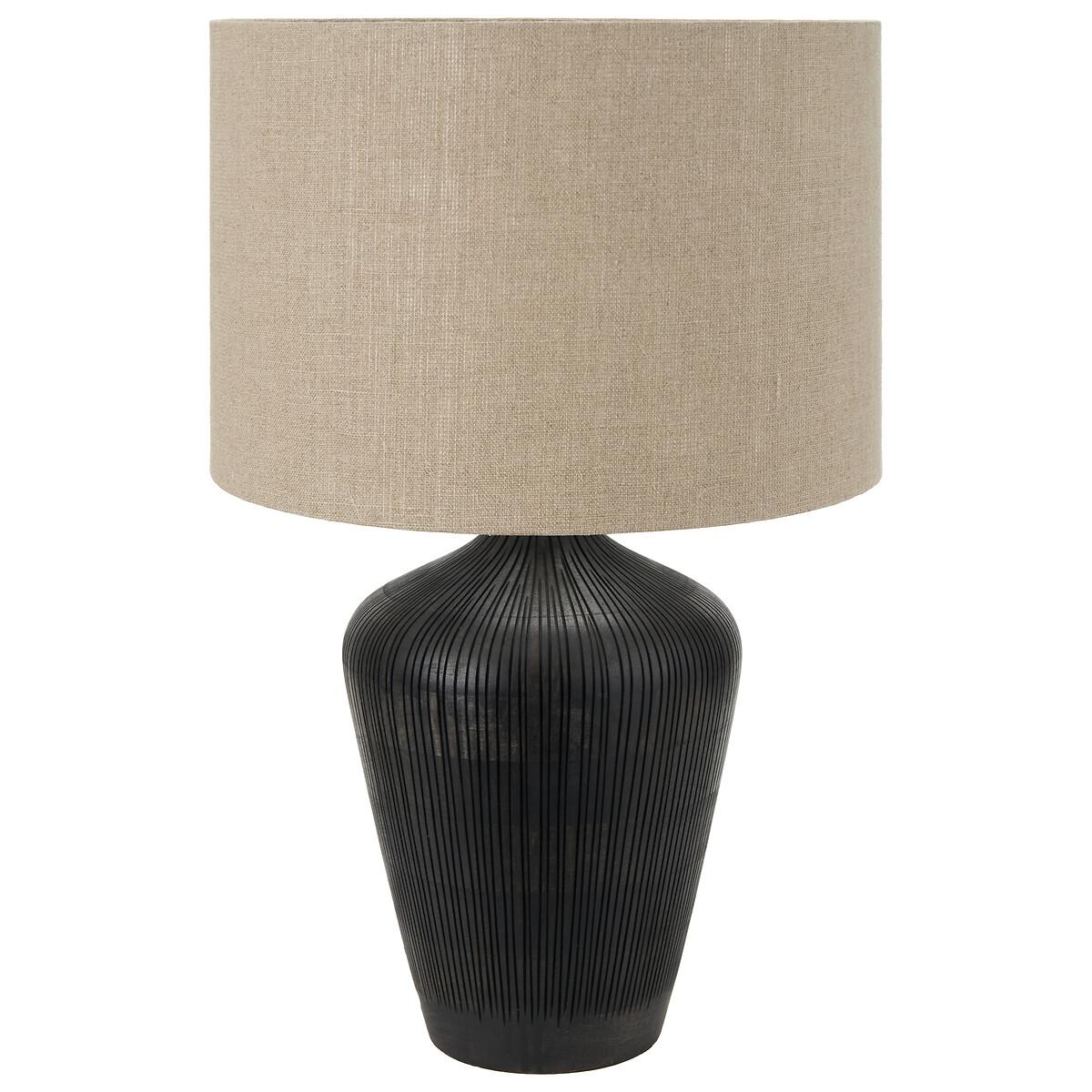 A tall, curved, elegant shape, this contemporary lamp has a wooden base with an etched linear design, finished in a striking black. Add one of our stylish cylinder shades from our extensive range. Recommended lampshade size: 40cm diameter. Product Dimensions: 25x 25x 42cm. Weight: 3.2kg Mango wood 90%, Iron 10%One Size. This product will be dispatched by one of our trusted suppliers. You’ll be contacted by their selected courier about your delivery. PACIF01