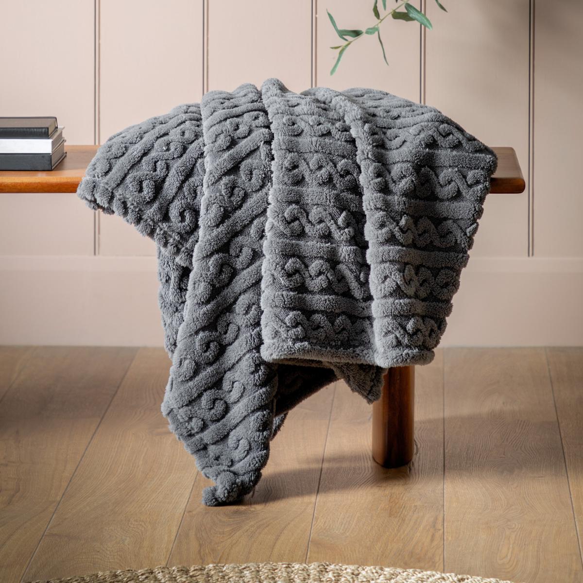 Extra chunky and extra soft this cable knit throw will not only keep you cosy and warm but add texture, dimension and style to your room. Perfect for cosying up on sofa days you wont have to sacrifice style for comfort. Extra chunky and extra soft this cable knit throw will not only keep you cosy and warm but add texture, dimension and style to your room. Perfect for cosying up on sofa days you wont have to sacrifice style for comfort.