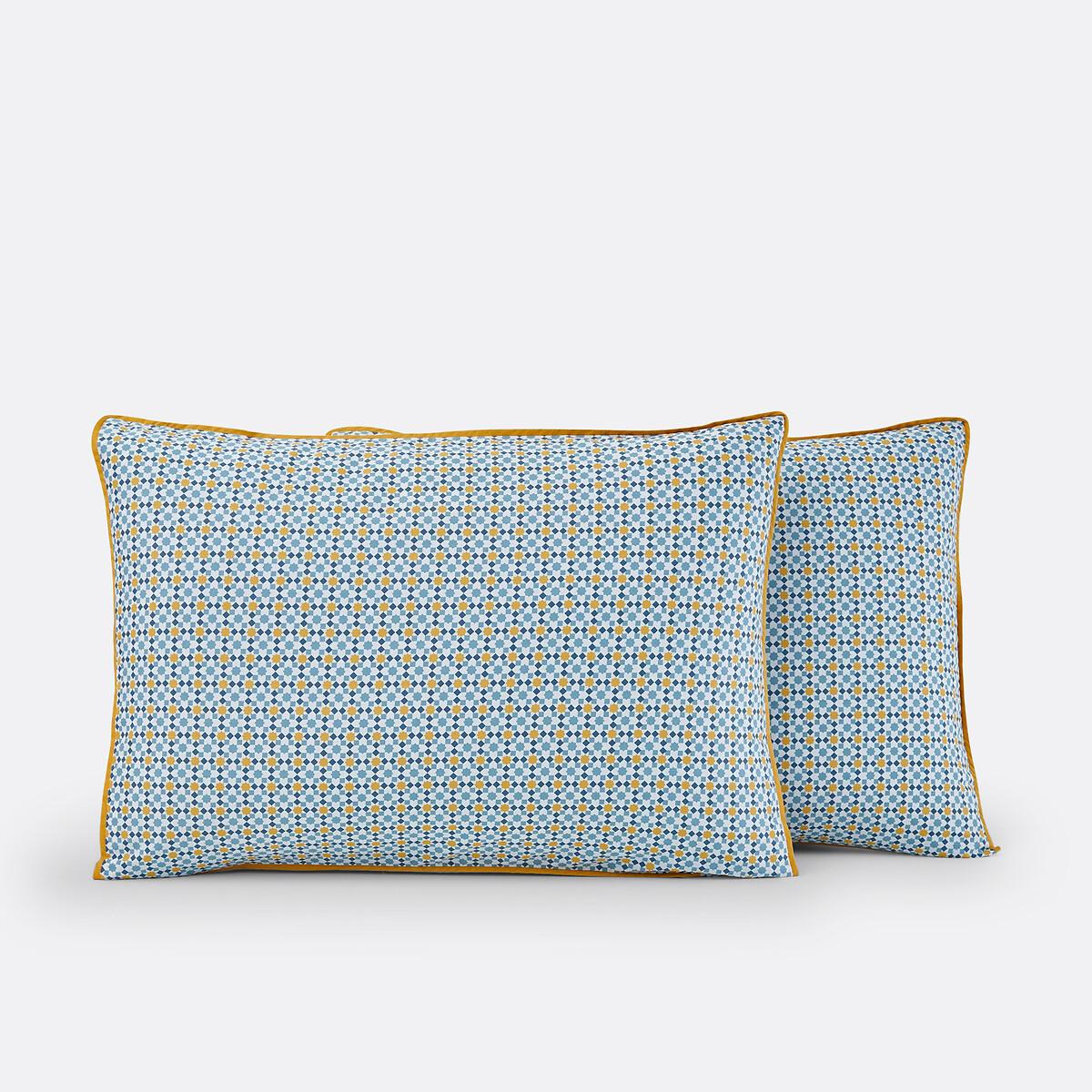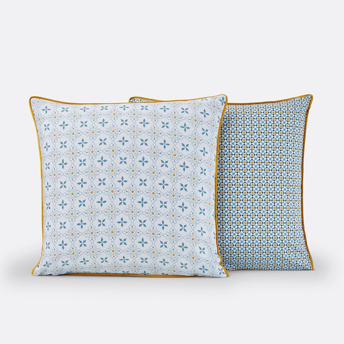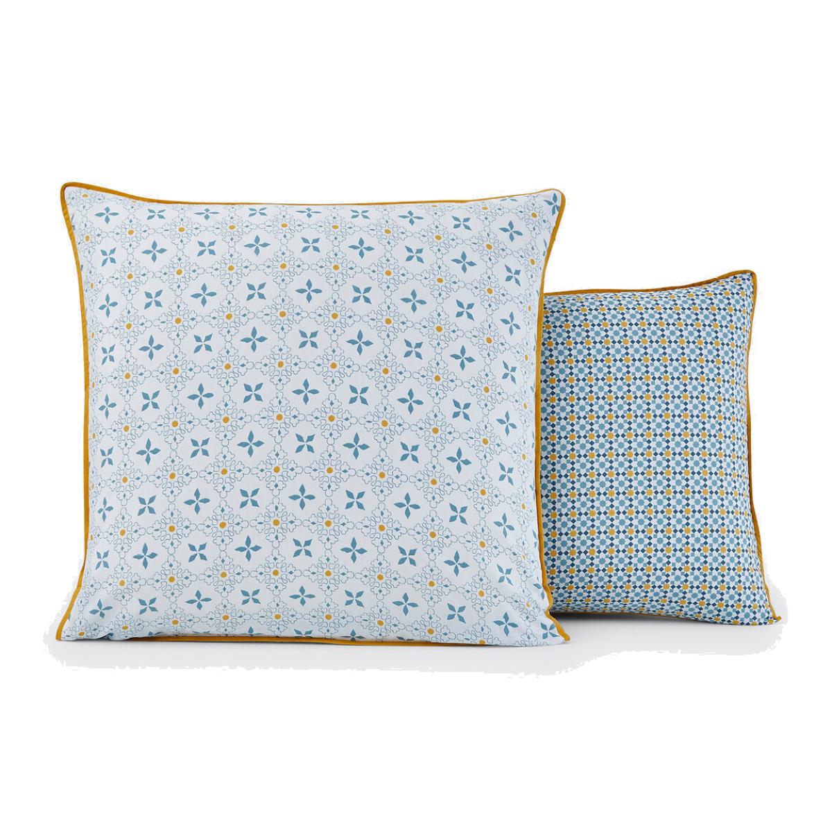 An alliance of harmonious patterns and shades in current tones sets up the Teyben set in pure cotton. Cotton is part of our daily lives. We love it for its suppleness and softness. Easy Care, it is ideal for the beds of young and old alike!Product Details • 100% cotton, high quality canvas • Sack shape • Square cover:Front printed with mosaic-style patterns, back printed with micro-patterns • Rectangle cover: Micro patterns on both sides • Contrasting taped edging. Care Advice • Machine washable at 60°C • By washing your laundry at 40°C instead of 60°C, you limit energy consumption. Sizes • 50 x 70cm: Rectangle cover • 63 x 63cm: Square cover • OEKO-TEX® Standard 100. Standard 100 certification by OEKO-TEX® tests textile products for harmful substances via an independent, international label.