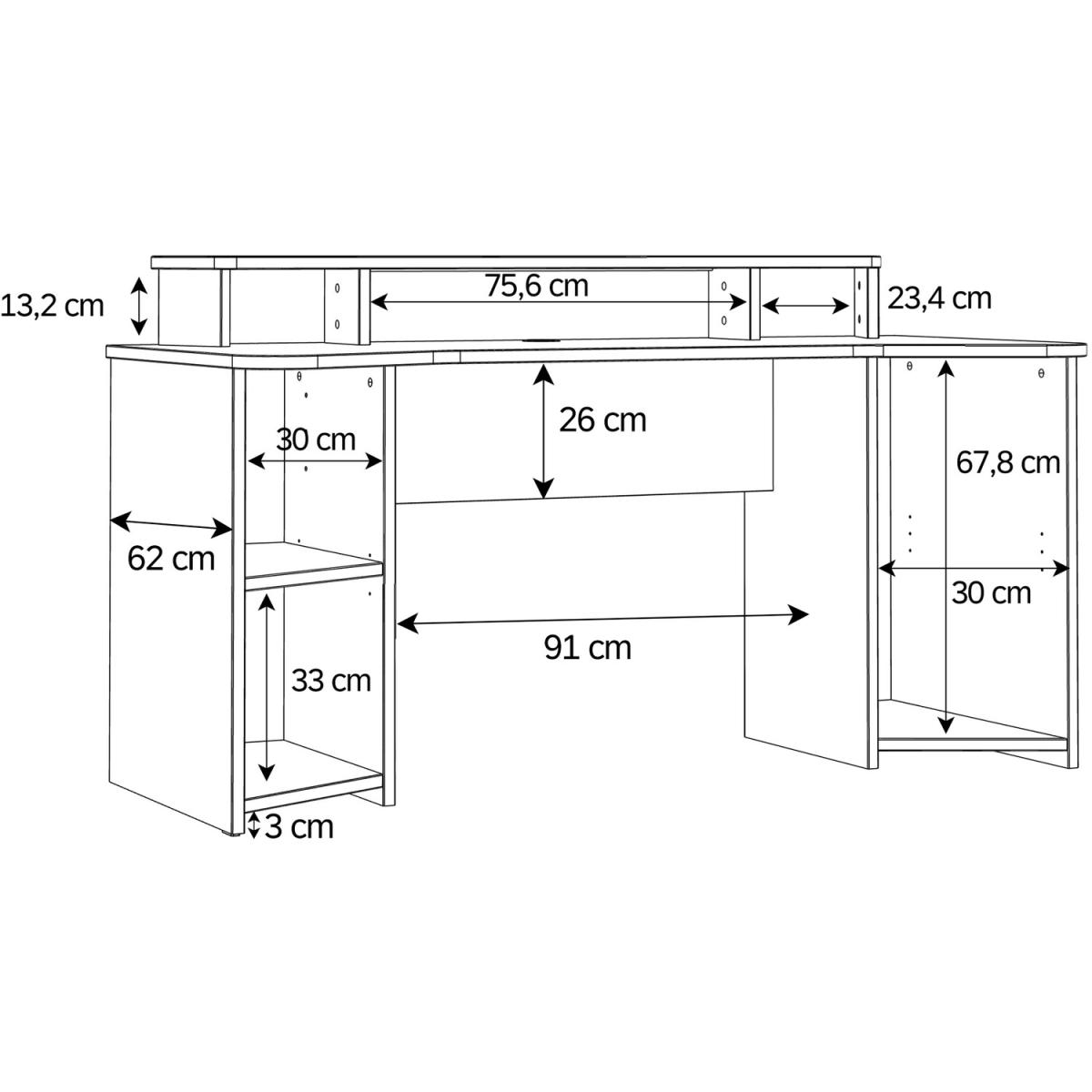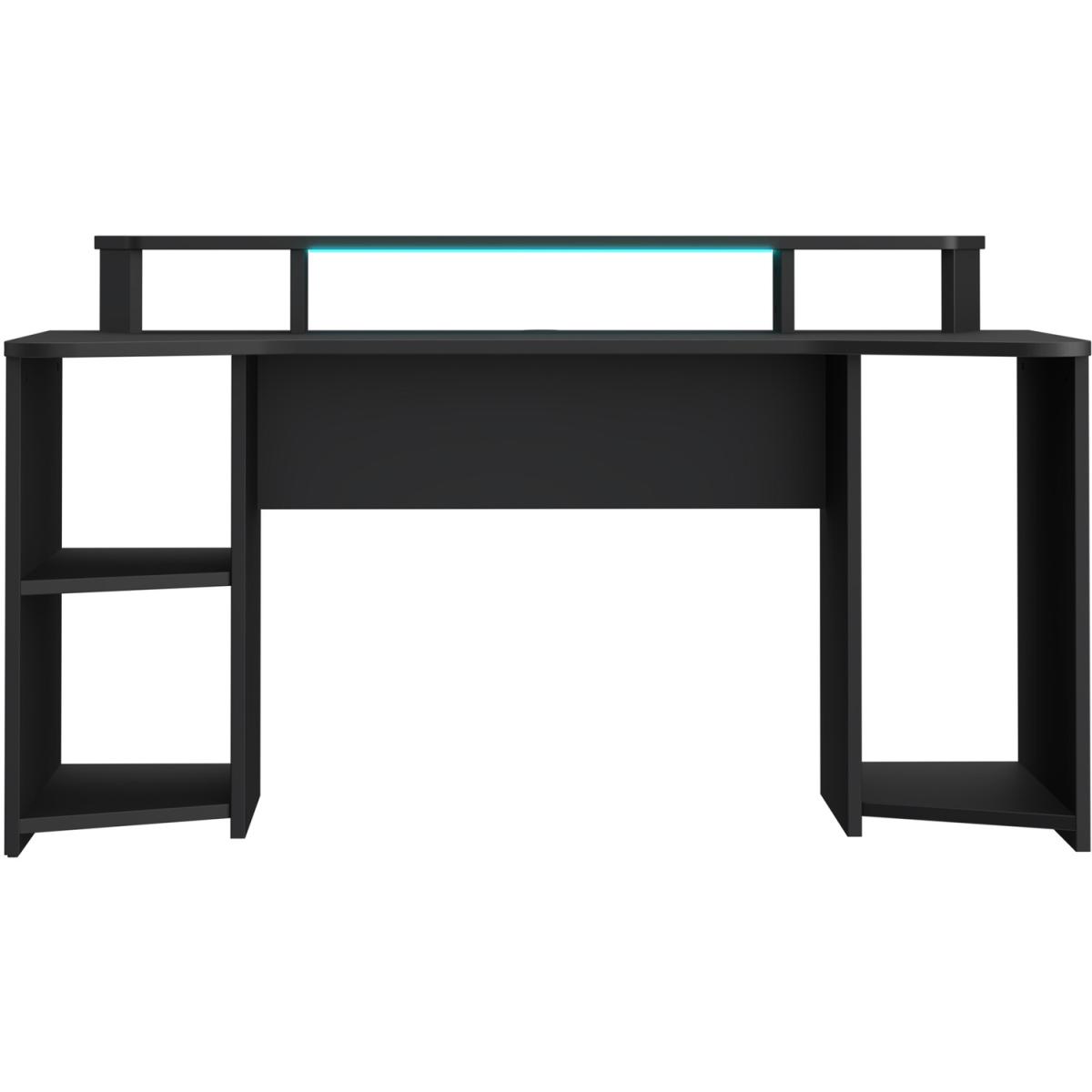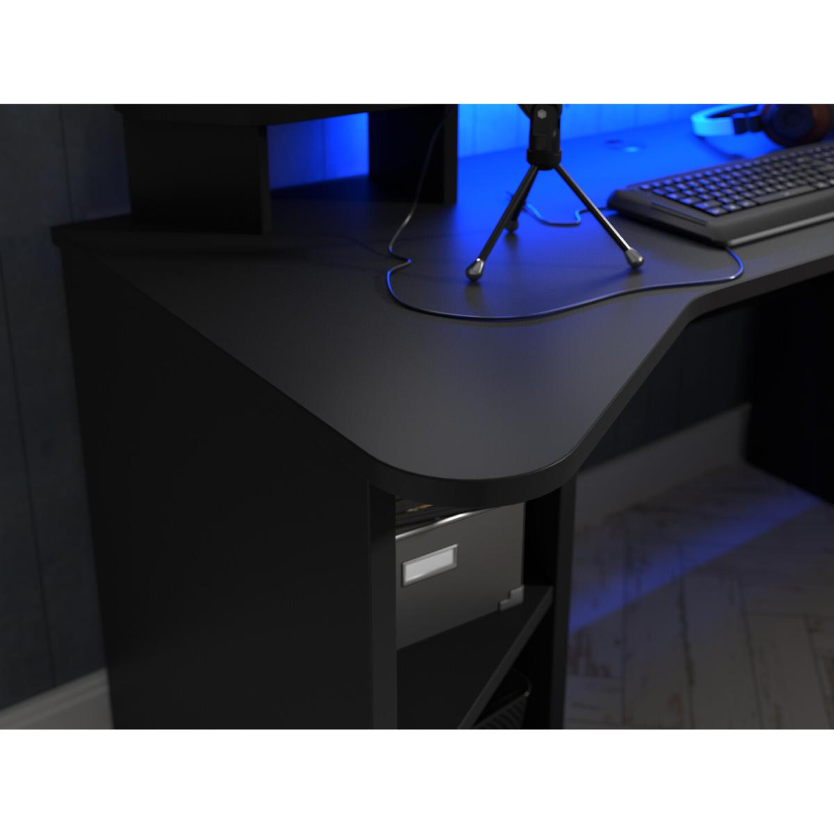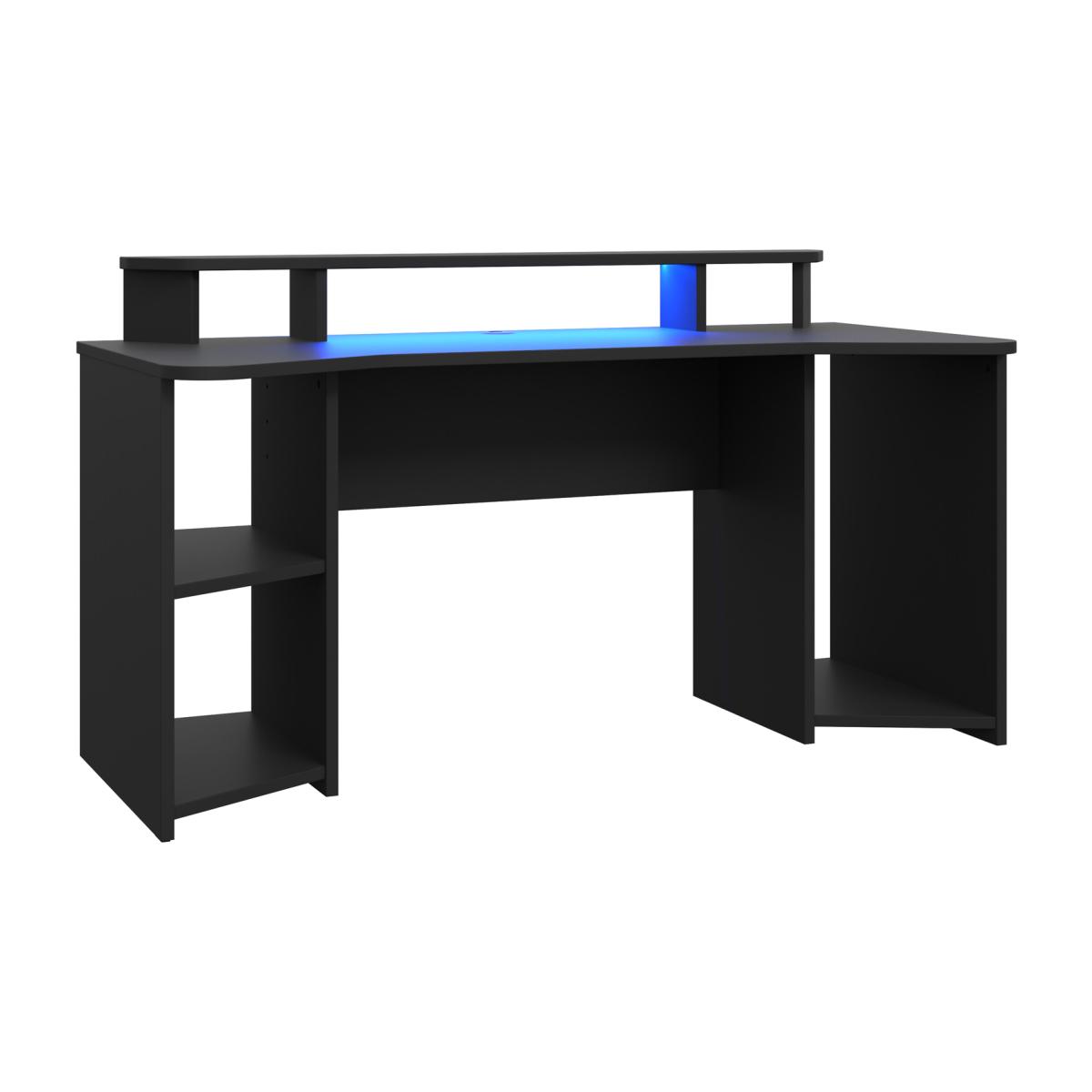 Bold, stylish, and designed to cater to every gaming enthusiast's dream, the Tezaur Gaming Desk with LED is more than just a desk; it's an experience. Crafted with precision and attention to detail, this masterpiece is the perfect companion for gaming consoles, elevating your setup to new heights. And let's talk about lighting - the Tezaur takes it to the next level. Embedded with built-in strip lights, this desk will transform the look of your gaming space. The desk even has plenty of storage space for your PC, monitor, and gaming accessories on the included shelves.