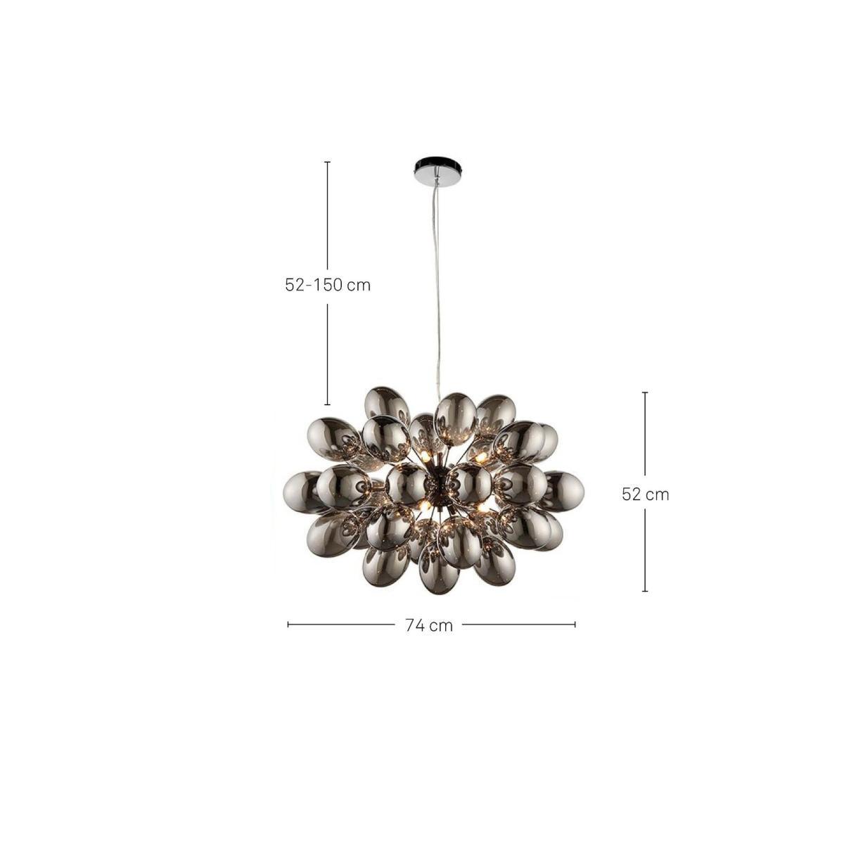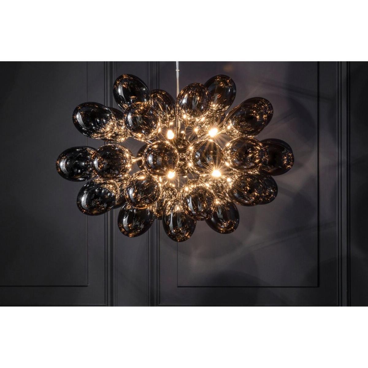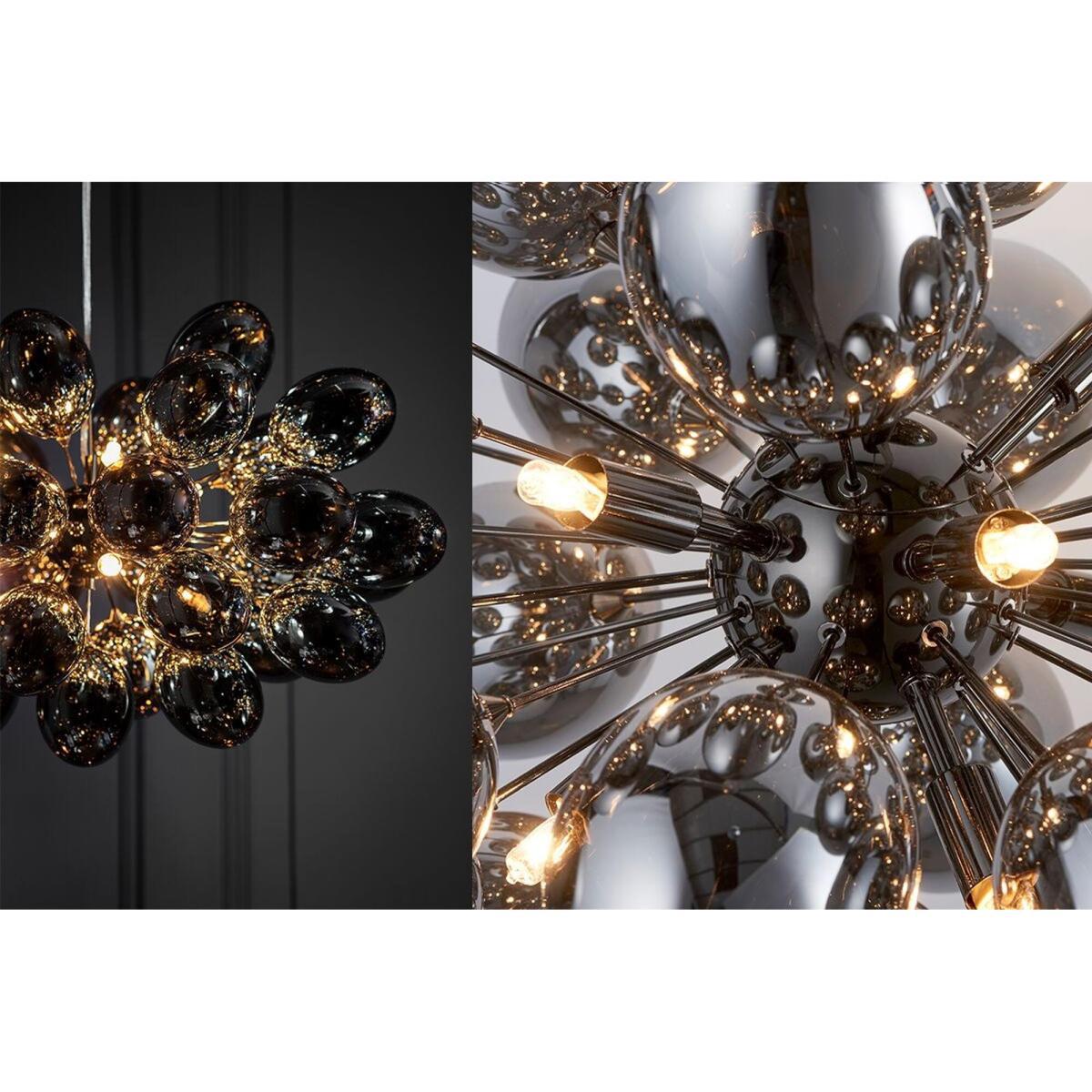Discover the Thaddeus pendant, a conversation-starter for those seeking a dramatic interior. This extraordinary fitting has a black chrome-finished plate with fixed arms, which holds a cluster of spherical, dark chrome glass shades. The Thaddeus is a vibrant design that commands attention. Discover the Thaddeus Lighting Range.