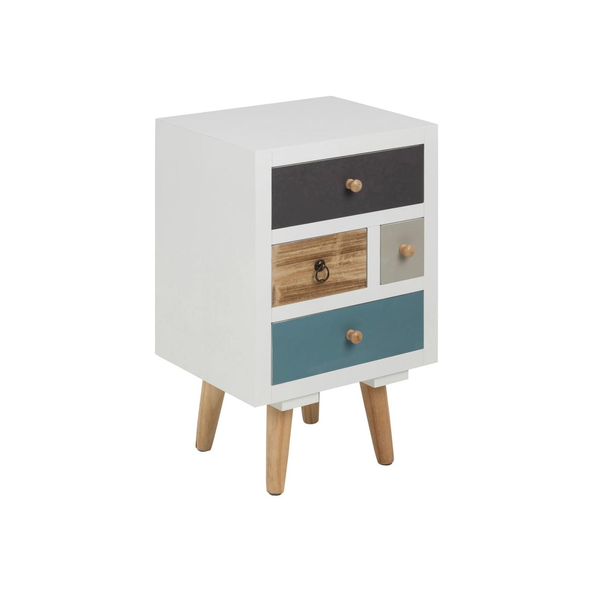 Add a touch of charm to your home with the Thais Shabby Chic Bedside Table. Flaunting a charming white hue, this bedside table has a lovely design that's sure to elevate your room's ambience. Each of its drawers features a unique colour and material to create an eye-catching look you'll love. The drawers provide ample storage to keep your nighttime essentials within reach so you can declutter your bedroom easily.