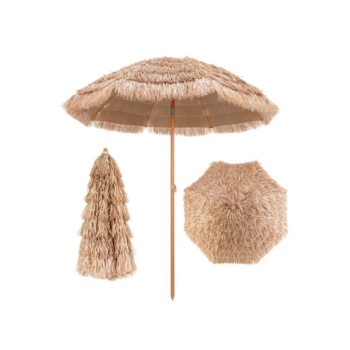 Our 192cm thatched patio parasol is crafted with high-quality polyester fabric and PP material, which is fade-resistant, ultraviolet-resistant, and durable, ensuring a long lifespan. The portable and lightweight patio beach parasol would not take up much space. Delete. Thatched Tiki Patio Parasol - Brown