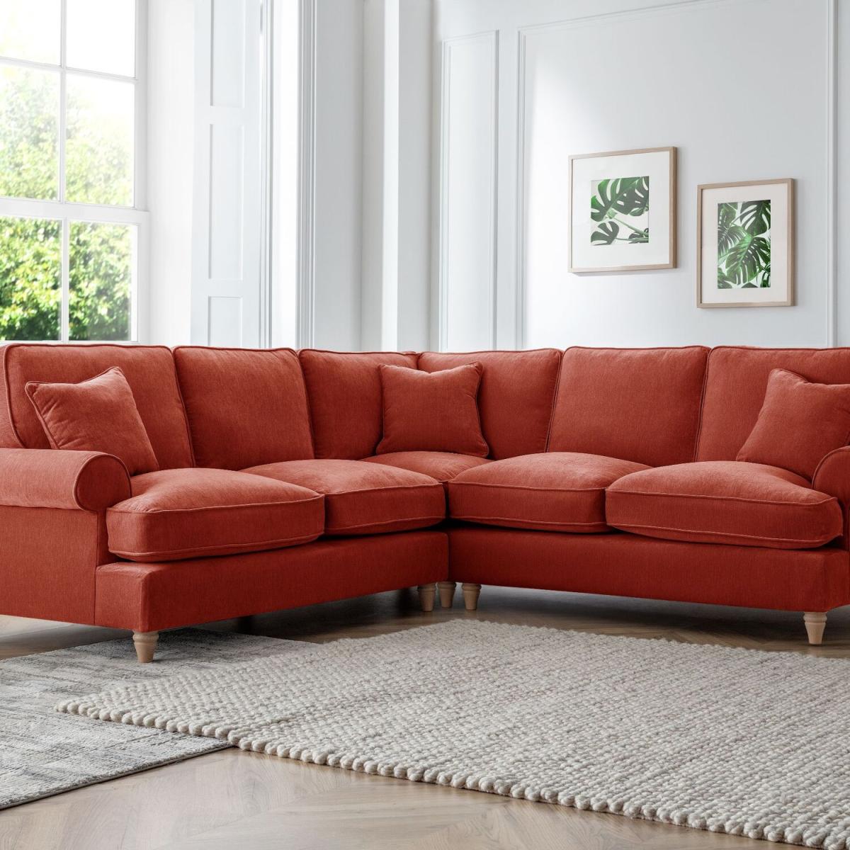 I love this corner sofa for its bold apricot tone, which adds warmth and a pop of colour to a living space. It works particularly well in contemporary or Scandinavian interiors, where clean lines and muted palettes are common, allowing the colour to stand out without overwhelming the room. For styling, consider pairing it with neutral cushions or textured throws to create a cosy but modern look. It’s also versatile enough to work in more eclectic mixes-layer with patterned textiles or vintage accessories for added personality. Its generous size makes it ideal for entertaining or family lounging, and placing it near natural light will really highlight its vibrant hue.