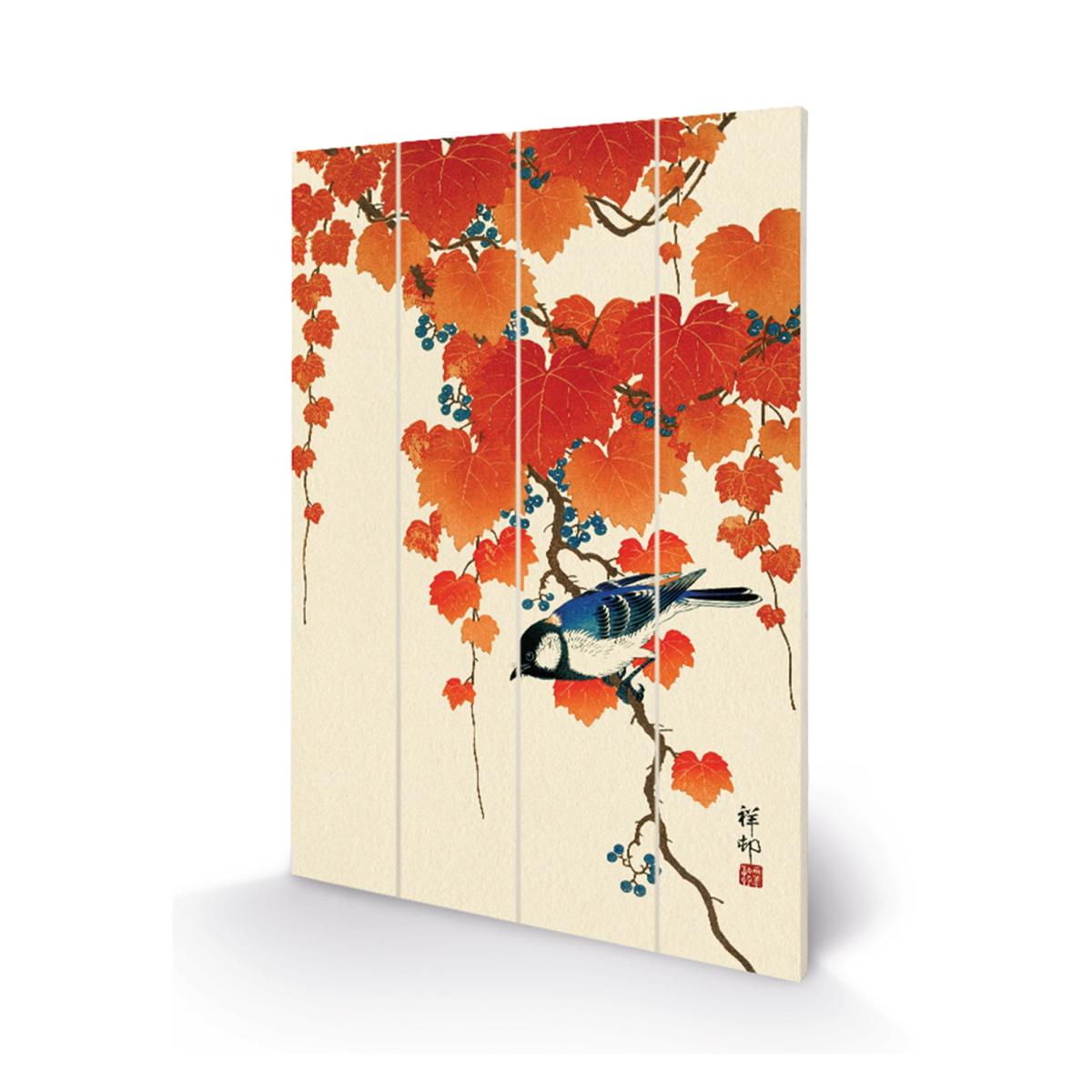 The Art Group Bird and Red Ivy Wooden Wall Art Orange