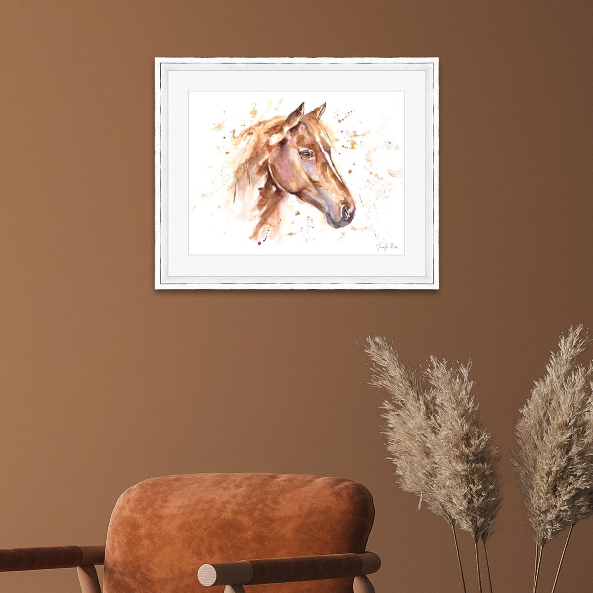 I love this print because it brings a warm, earthy tone with its rich brown hues, making it a versatile piece for various interior styles. It works particularly well in neutral or rustic-inspired spaces, such as country cottages or modern farmhouses, where it can add character without overpowering the overall look. When styling, consider pairing it with natural textures like wooden furniture or woven accessories to enhance its horse motif. For practical tips, hang it at eye level in living rooms, hallways, or bedrooms to create a focal point, and keep surrounding decor simple to let the artwork stand out. It’s a great piece to bring a touch of nature indoors with understated elegance.