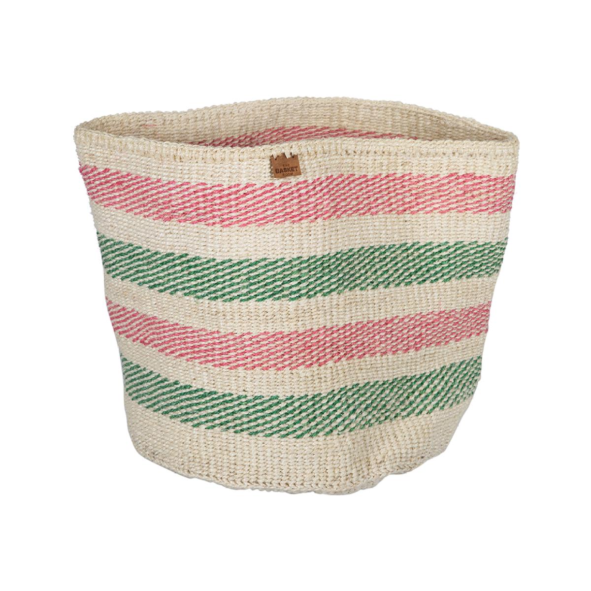 Keep your home clutter-free in style with this Alama basket. Handwoven in Kenya by skilled artisans, it features a natural finish with beautiful pink and green stripes for the perfect pop of colour. Key features: * Material: sisal grass * Dimensions: Ø32.5xH32.5cm * Natural colour * With pink and green stripes * Finished with a leather tab * Handwoven in Kenya * Supports the livelihoods of African weavers * Ethically made * Please note, due to handmade nature variations can occur