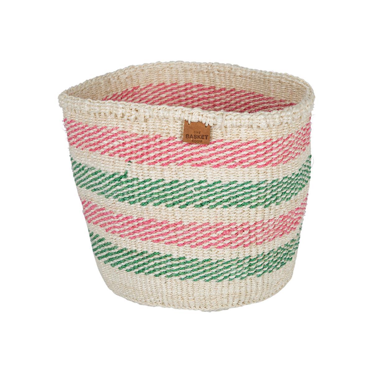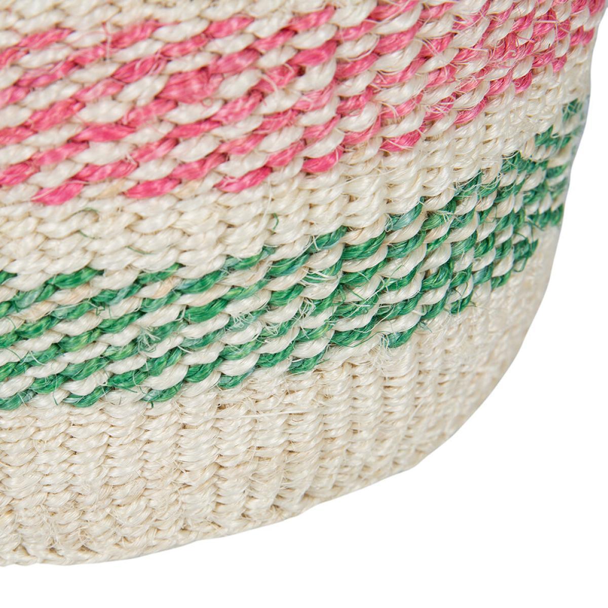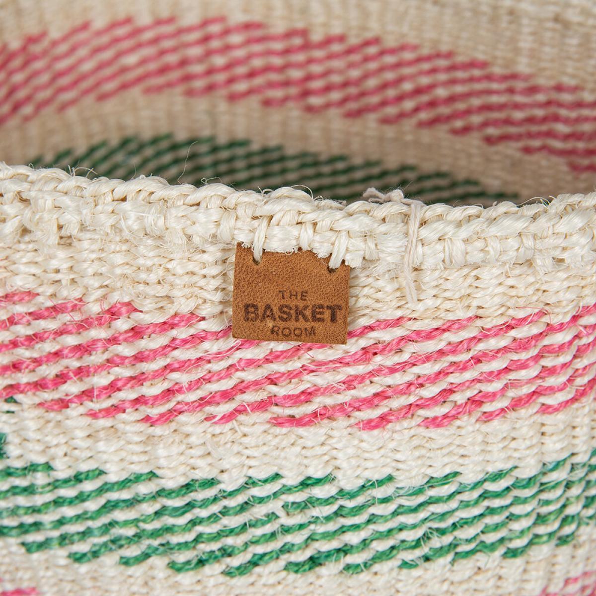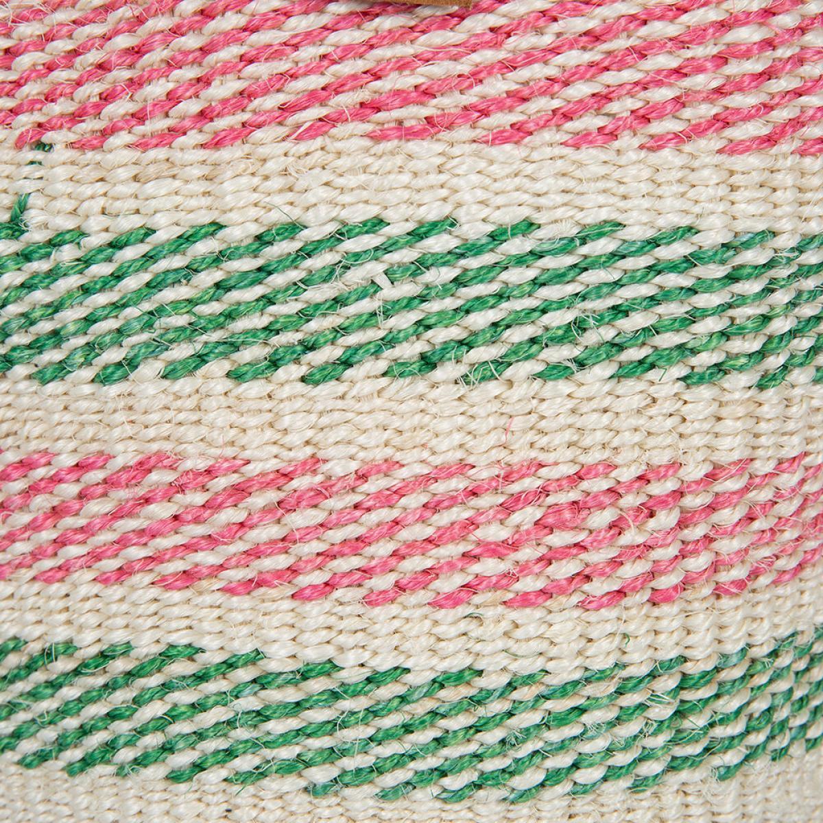 Keep your home clutter-free in style with this Alama basket. Handwoven in Kenya by skilled artisans, it features a natural finish with beautiful pink and green stripes for the perfect pop of colour.
