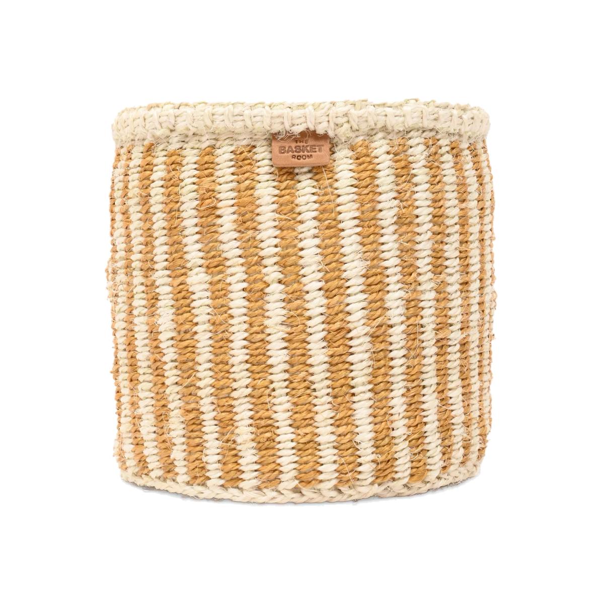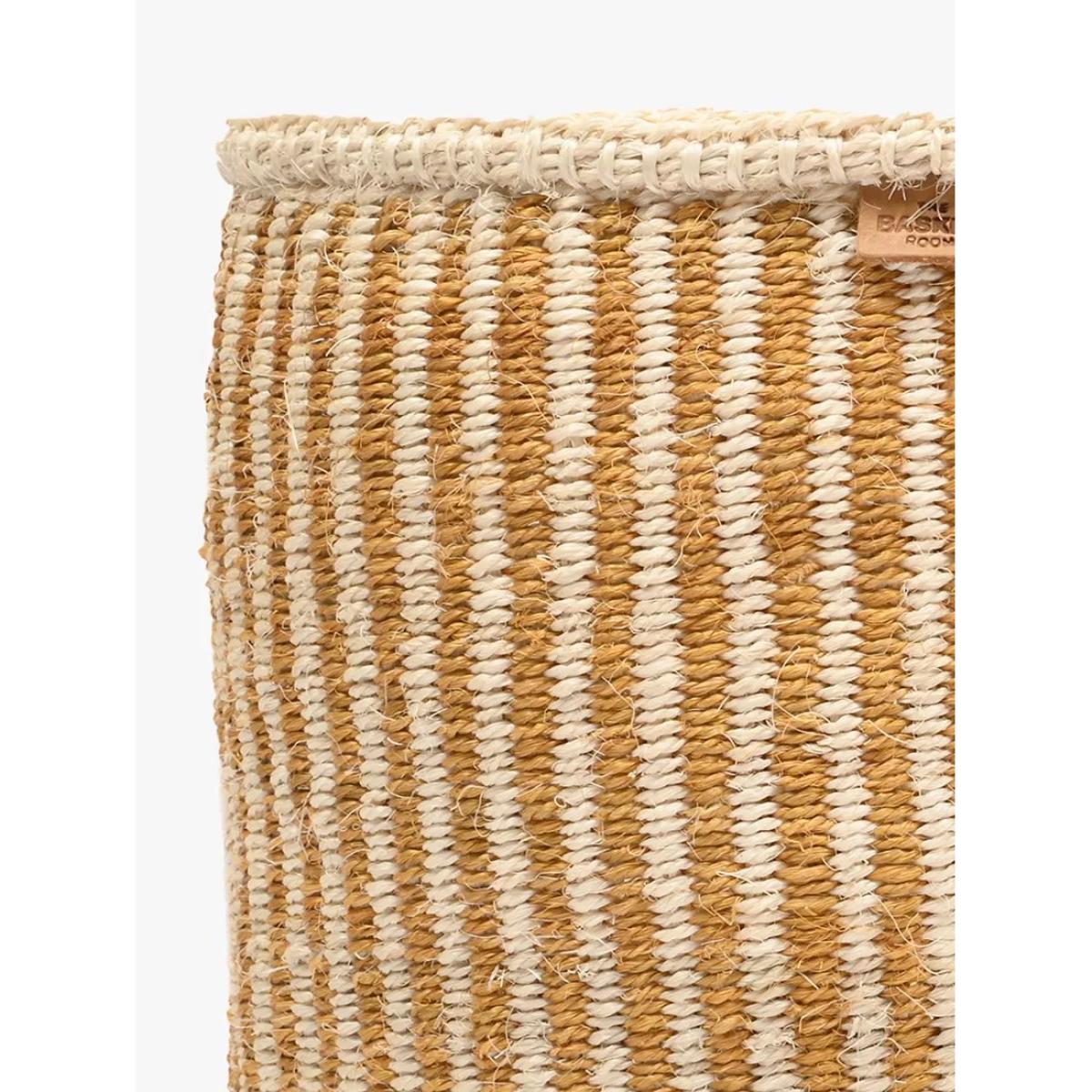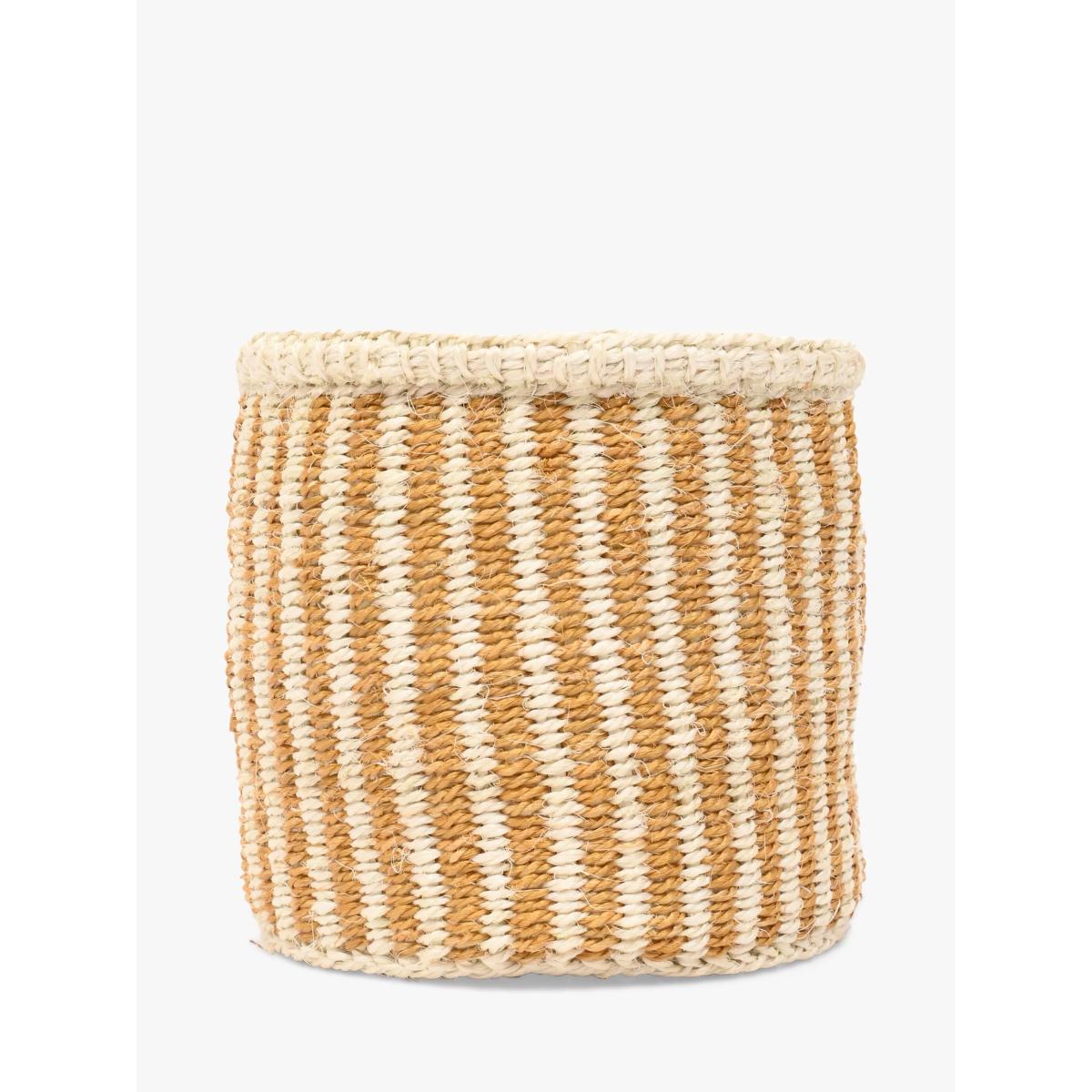 Consciously created in Kenya, by experienced craftswomen in rural zones, this multipurpose storage basket brings natural colour to contemporary living spaces, with gold pinstripes against an organic sisal base. A genuine leather tab adds the finishing touch. Use it as a woven plant pot, a floor basket for blankets and throws, a toy basket to tidy children’s bedrooms or simply a stylish storage basket for shelves. It’s ethical, sustainable, and beautifully handmade - the perfect sisal basket gift. Please note that as a handmade product, dimensions and colours may vary from those in the image.