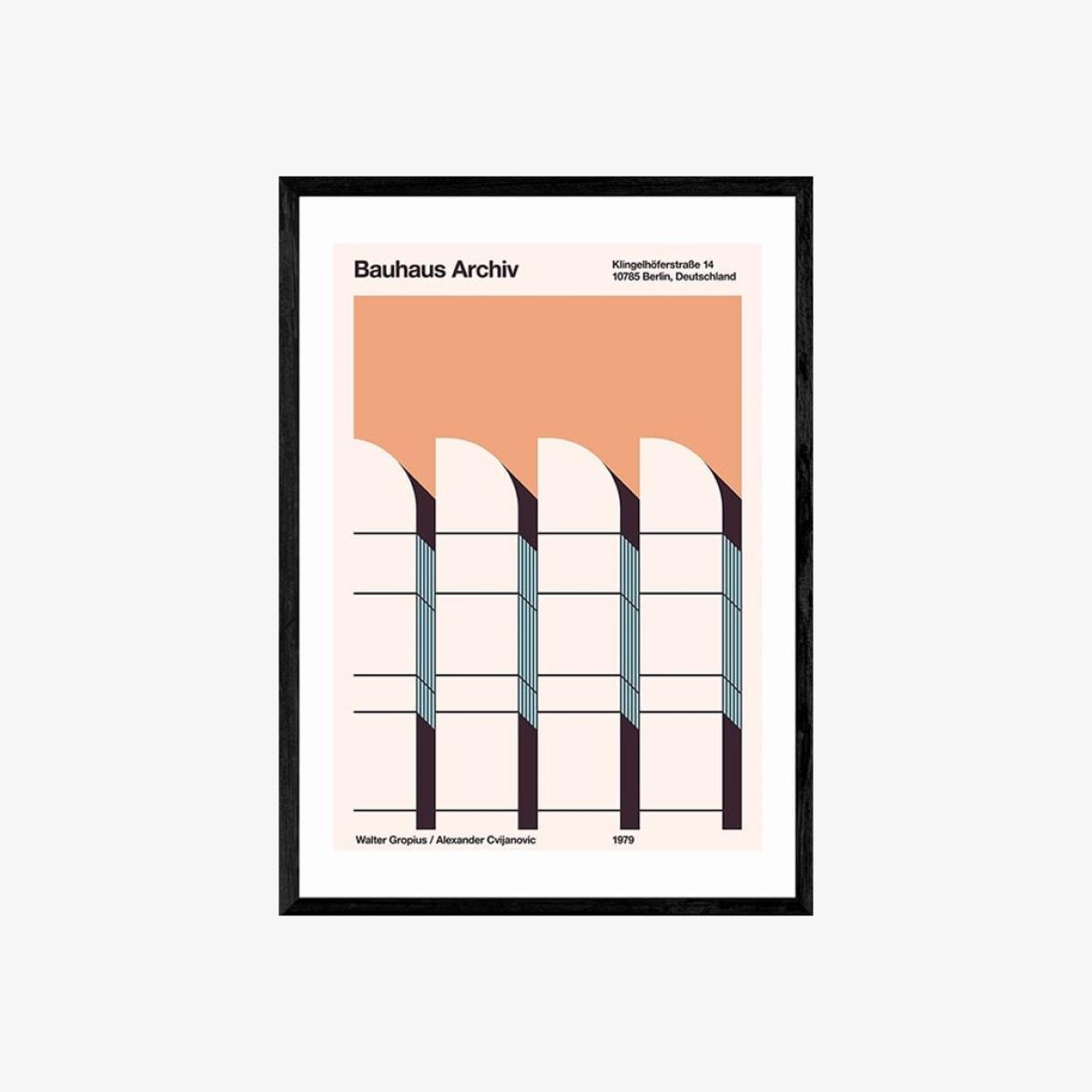 Create a retro feel with this Bauhaus Archive Graphic Print. Featuring architectural details and muted colours this art print poster will add a touch of mid-century style to your living room or bedroom. Only giclée printing processes are used for this print resulting in the highest quality museum-level colours and sharpness. Choose between a number of different coloured frames and three sizes for the perfect print for your space.