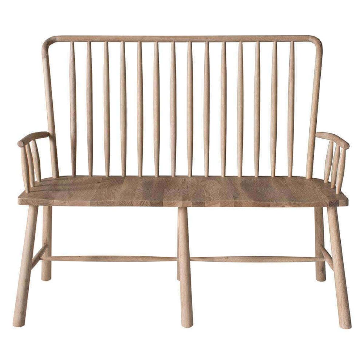 The Bergen Hall Bench is a stylish addition to any hallway, providing seating for up to 3 people. Made out of light oak, this bench has the look and feel of Nordic furniture, benefiting from tapered legs, sculpted back spindles and a softly squared seat back and delicate arm rests.