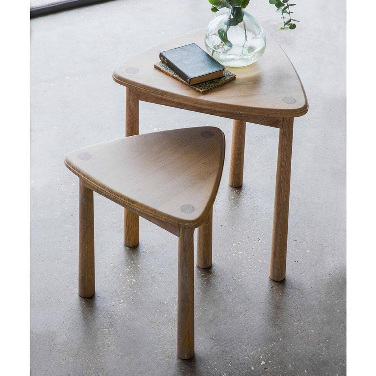 TheBergen Nest of 2 Side Tablesis stylish but practical, giving you the versatility to scale from 1 side table to 2. Made out of solid oak and veneers, the rounded triangle design is complemented bysleek tapered legs.