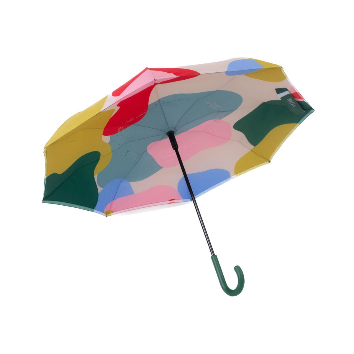 Discover the epitome of luxe utility with Brella. Our inverted design collects rain and is deposited swiftly upon closure to avoid any wet mess. Our double layer design doesn't just look good, it provides wind ventilation for up to 60 mph winds as well as double the uv protection. With 40 inches of coverage above your head, this umbrella is a must-have accessory for those who appreciate sophistication and performance.