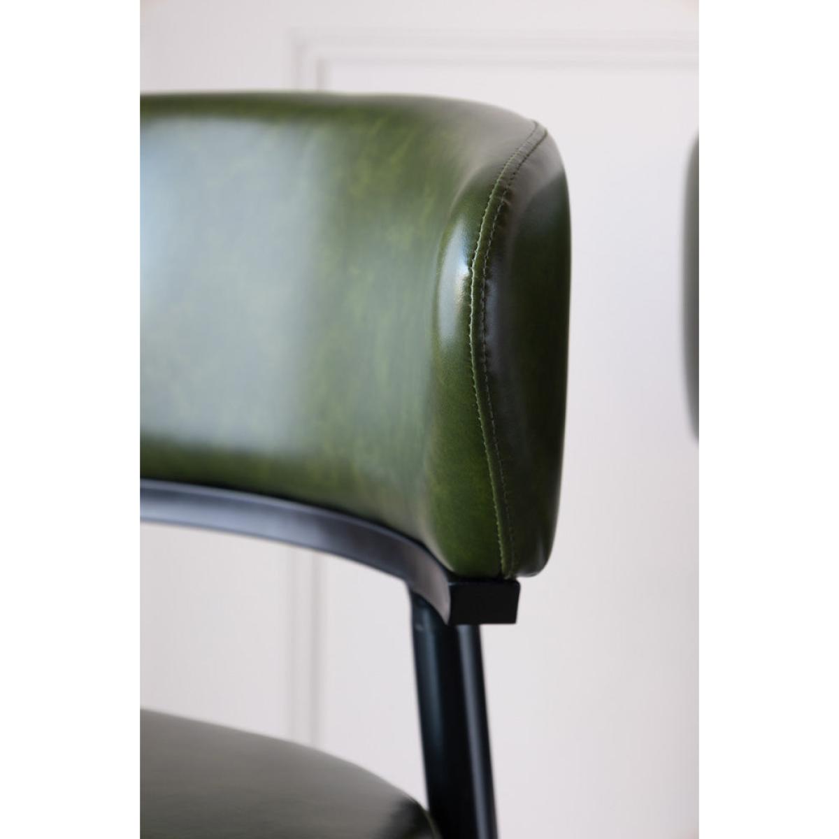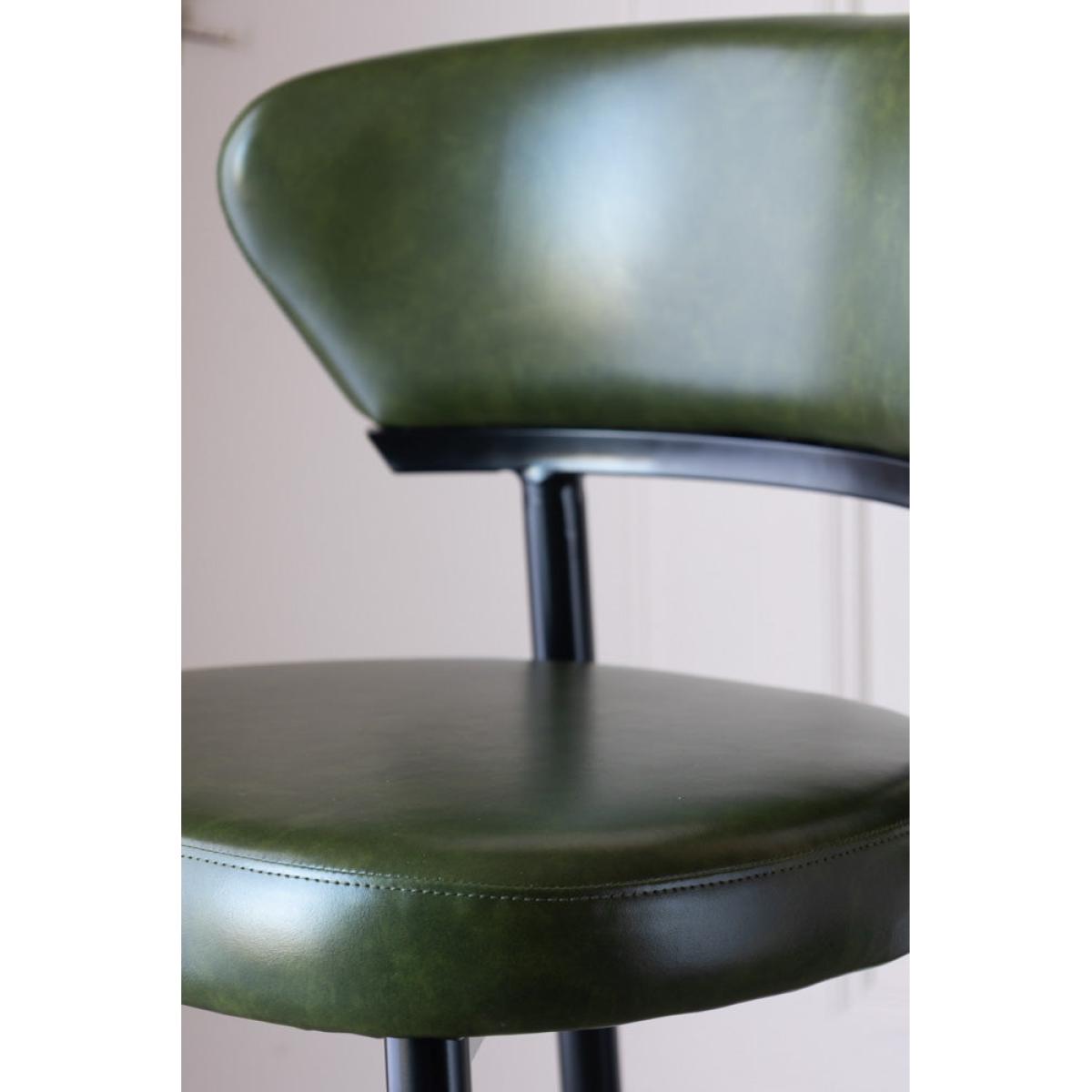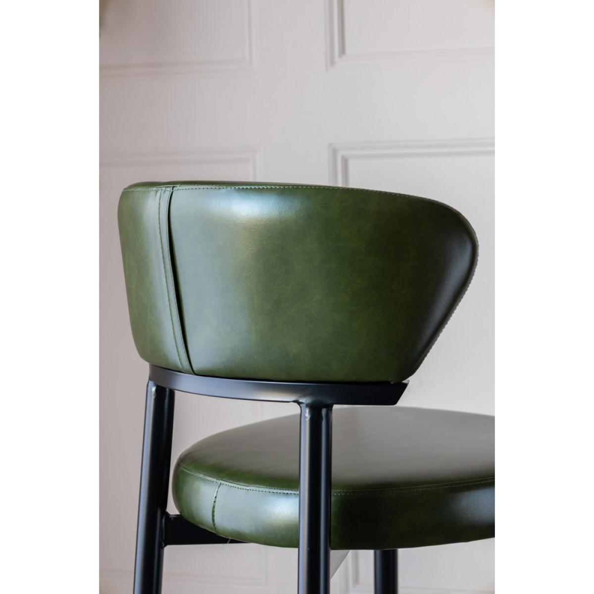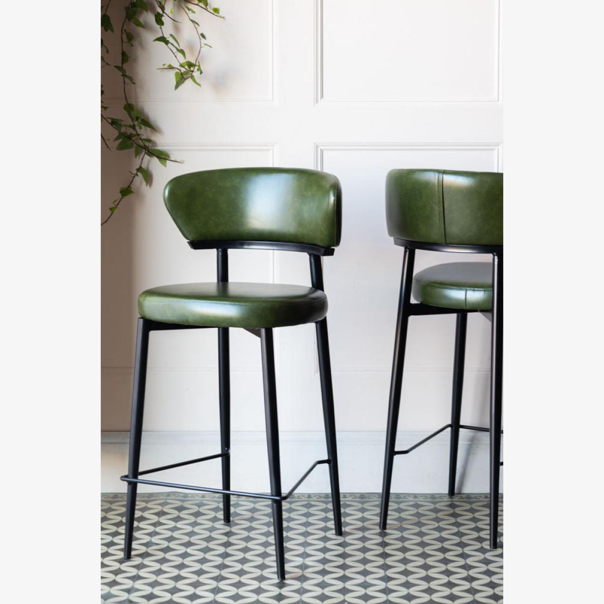 Meet The Blake Bar Stool In Forest Green - your new favourite spot to sit, sip and style up your space. With sleek black metal legs, this high-backed barstool is anything but ordinary. The faux leather seat and backrest come in a beautiful forest green, blending sophistication with a fresh, playful vibe. The clever design features a gap between the backrest and seat, giving this kitchen barstool a modern, airy feel that is as comfy as it is chic. So, whether you're at your kitchen island or your home bar, this comfortable barstool brings personality, elegance and a pop of colour to any room. The Blake Bar Stool In Forest Green Measures: Seat H66cm x Seat D40cm x Full H93cm x Full D44cm x Footrest H20cm Materials: Faux Leather & Metal