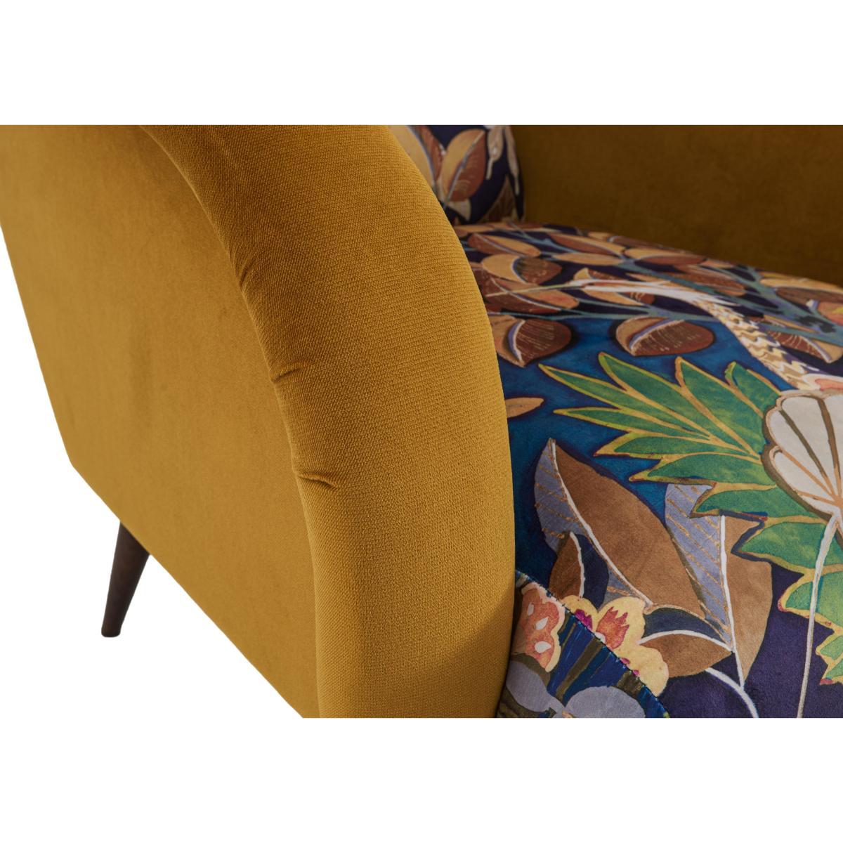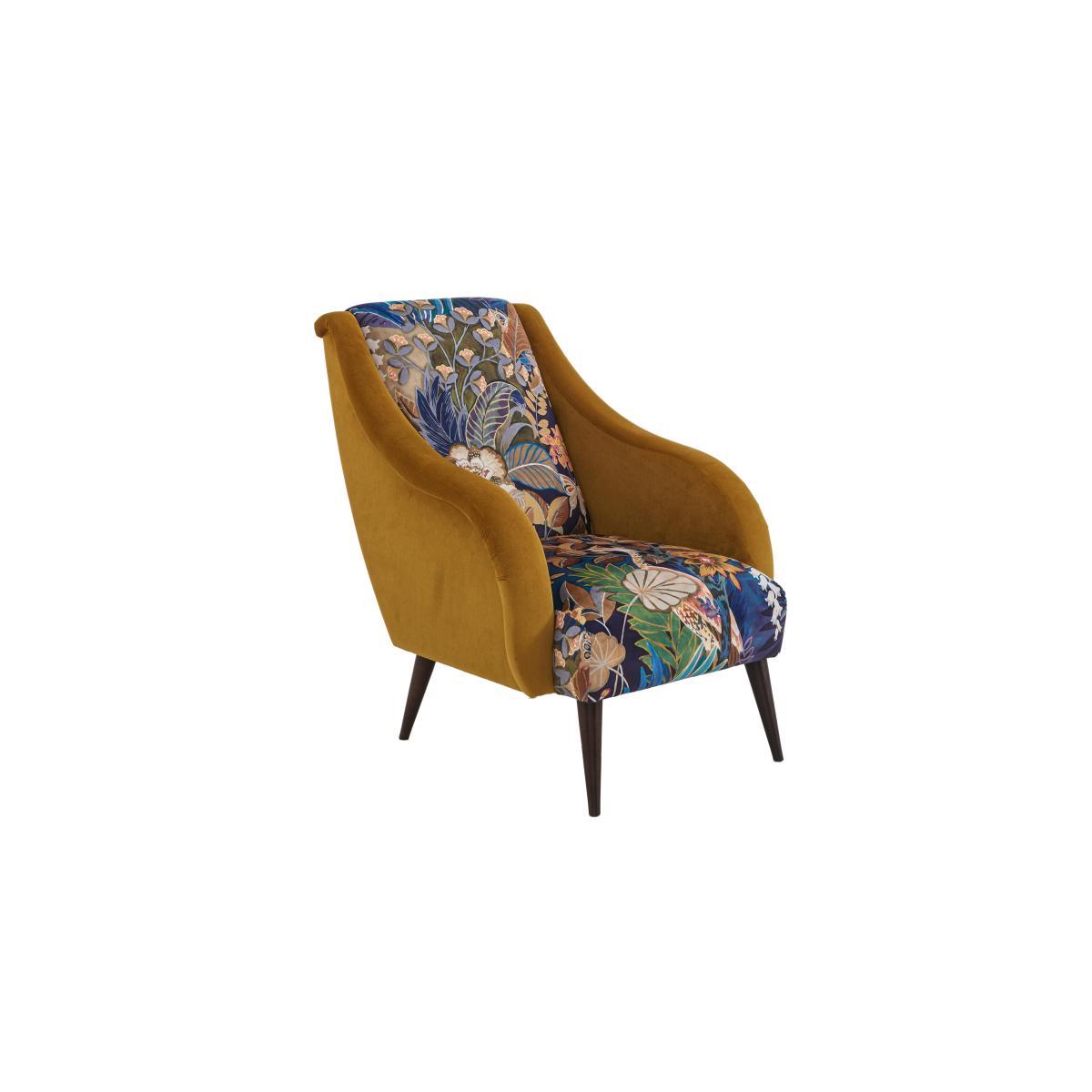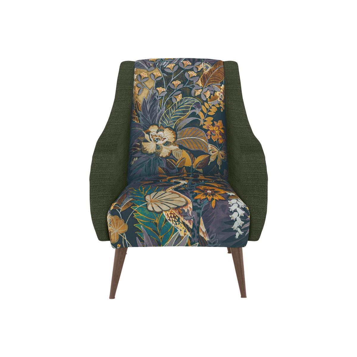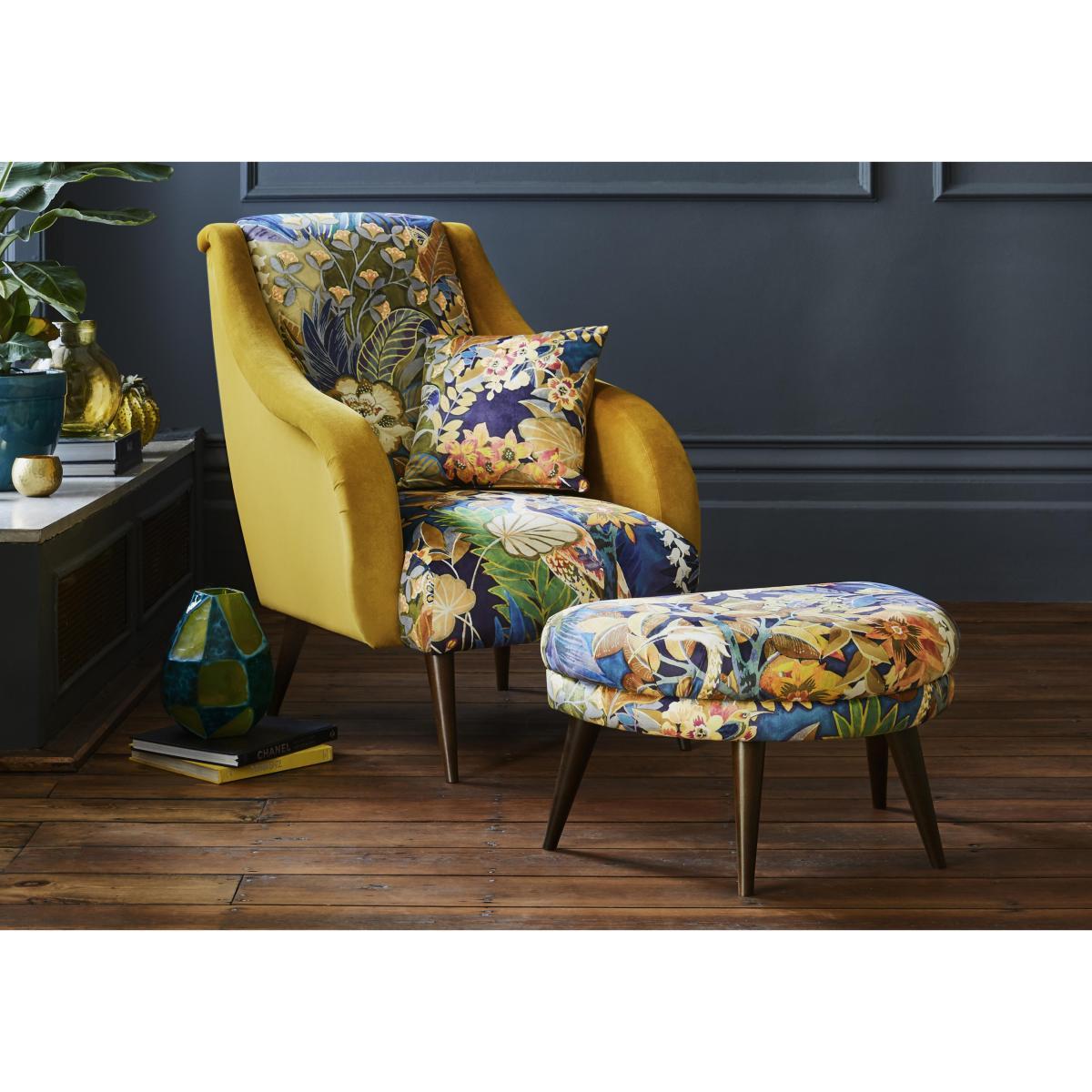 With cool curves and tropical vibes, the Botanical patterned accent chair is the perfect spot to escape to a world of relaxation. Inspired by paradise, handmade in the UK. Why you'll love it. A bold and beautiful armchair inspired by island paradise. Classic British design with a statement silhouette. Fabulous floral patterning on the seat and back cushion. A deep, supportive sit designed for real relaxation. Upholstered in a soft weave fabric and printed velvet. Available with dark or weathered turned legs. Inspired by paradise. Handmade in the UK. Exclusive to Furniture Village. What you need to know. Medium comfort level. Supportive foam cushion interior. Some fabrics can show wear on areas of more use or in direct sunlight. Patterns aren’t matched, which means every sofa is unique. Please read our upholstery care guide for more advice. Part of the Botanicals collection.